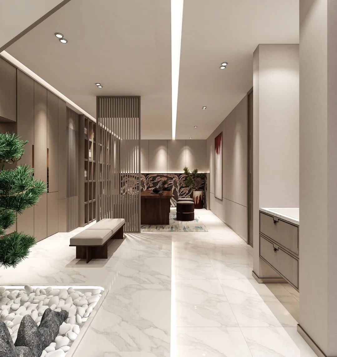 0 k3 S" M4 a0 H( ~7 W: T茶室 teahouse 茶室采用两条大灯带作为光源使得人内心宁静,深色的茶具也给人一种安心舒适之感。  ▲茶室 难得偷得浮生闲, 松竹当旧友, 品赏旧时光。 2 ^/ W8 p( |4 C