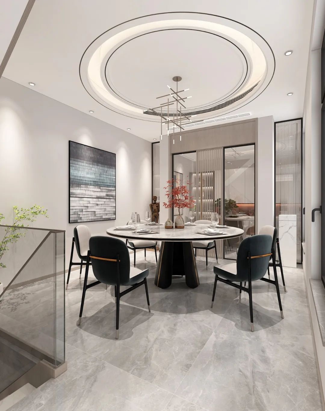 餐厅 Restaurant 餐厅采用中式圆桌设计,灯具也创新采用筷子形状的灯管穿插而成。  ▲餐厅 圆形是属于中式的浪漫团团圆圆 圆圆满满 是最朴素的祝福
