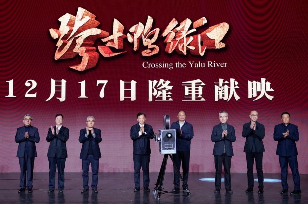 全景展现伟大抗美援朝战争的电影《跨过鸭绿江》将于12月17日在全国献映。该片由中央广播电视总台出品、总台影视剧纪录片中心摄制、总台中国电视剧制作中心有限责任公司承制、华夏电影发行有限责任公司联合摄制。12月15日,影片在北京举行了首映式,中宣部副部长、中央广播电视总台台长兼总编辑慎海雄出席首映式。 主办方供图 电影《跨过鸭绿江》是一部“全景式、史诗性”展现抗美援朝战争的重大革命历史题材作品。影片兼具史实性、艺术性、思想性,从国际视野出发,以中国人民志愿军司令员兼政治委员彭德怀的视角讲述,从中央领导的战略思维、志愿军将领的战场谋略、前线志愿军战士的浴血奋战等多个维度,再现了东西两线和五次战役中一场场可歌可泣、荡气回肠的战斗,全面还原了那段波澜壮阔的历史。影片呈现出我军为赢得这场艰苦卓绝、震撼人心的伟大战争的最后胜利所做的牺牲和努力,弘扬了中华民族不畏强权霸权、敢于斗争的钢铁意志和顽强品格。 主办方供图 首映式上,中央广播电视总台编务会议成员薛继军用“三个首次”介绍本片:《跨过鸭绿江》是首次“全景式、史诗性”呈现抗美援朝战争的电影作品,是首次由“总台出品、原创自制”的故事片,也是首次与精品电视剧同步打造电影的创新尝试。影片的公映必将引领广大观众深刻铭记抗美援朝战争的艰辛历程,对进一步凝聚以爱国主义为核心的民族精神,具有特殊意义。 主办方供图 首映式现场,片中彭德怀司令员的扮演者丁勇岱“沙场点兵”。“战士们”依次应声集结,一声声喊“到!”声如洪钟、慷慨激昂,再现了中国人民志愿军“捐躯赴国难,视死忽如归”的盛大军威。在光影、声画的交织中,永不磨灭的中国人民志愿军部队番号旗徐徐展开,将首映式现场氛围推向高潮。
