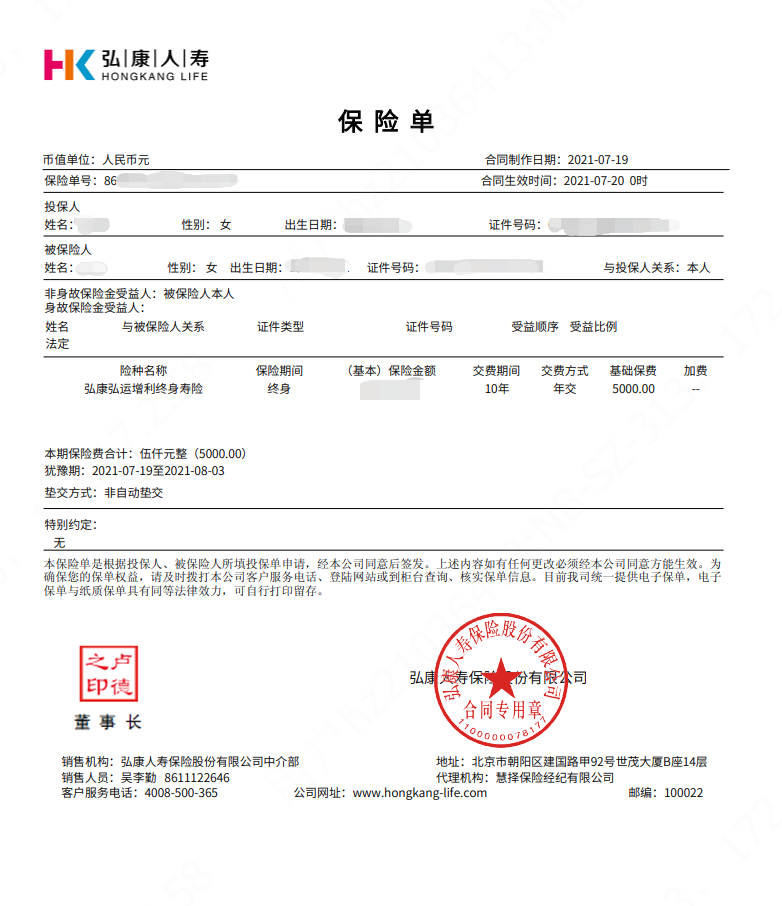 一大批优质年金、增额终身寿险下架了。恭喜已经上车的朋友,不管以后行情多差,都不受影响,可以安心拿着复利收益。 但是也要提醒已经投保成功的朋友,也别忘了确认好下面5件事,避免以后吃亏~ 1,一定要完成回访 投保完成后,保险公司一般会打电话给你做回访,要注意接听。 回访内容一般是问一些你的个人信息、是不是自愿买的保单、知不知道保单的保障等等。这是监管对所有保险公司的要求,也是为了保障消费者的权益不受损。 如果担心会错过电话,也可以主动打保险公司客服电话咨询具体回访时间。 除了电话回访,有的保险公司支持“在线自助回访”,短信附有在线回访链接,点击勾选几个问题,在线提交就可以,操作很方便。 比如像这样的短信: 2,邮箱会收到电子保单,注意查看 网上买完保险,你填的邮箱里会收到电子保单,它和纸质保单有同等的法律效力,可以放心。 以金满意足臻享版的保单为例,长这样: 如果想要纸质保单,可以自己打印出来,或者打电话给保险公司申请,一般长期险支持邮寄纸质保单。 收到电子保单后,有3个地方要注意: (1)保单里产品名称和购买的不一致,不用慌 你买的产品就是同一款,没有任何问题。合同里的名字,是保险公司的备案名。以金满意足臻享版的保单为例,上面的名字是弘康弘运增利终身寿险,我们可以在银保监会官网的备案目录直接查到这个产品,正规靠谱。 (2)搞清楚2种受益人 受益人,就是领取保险金的人。非身故保险金受益人,即生前能拿到钱的人,是被保人本人。身故受益人,则是指被保人身故后,能拿到保险金的人。 后续如果想变更身故受益人,也是可以的,具体按照每家保险公司的规则操作。 (3)现金价值,白纸黑字就写在合同里 保单里的现金价值长这样(如下图),每一年有多少现价,白纸黑字都写在合同里了。 现金价值,其实就是我们自己的钱,放在保险公司里持续复利增值,前期不领取,越往后,钱越涨越多。 就算产品下架,行情再差,它都不会有变化,写着有多少,就得按约定情况增值、给付。 哪怕有一天保险公司不幸倒闭,根据《保险法》这些人寿保单也会转给其他保险机构来接收,合同依旧有效。 3,如果中途急需用钱,怎么办? 可以通过保单贷款的方式,一般能贷出现金价值的80%。 比如小明买了金满意足臻享版,某年保单现价有10万,他也正急需一笔钱周转,这时可以贷款出10万*80%=8万,贷款期限最长为180天。 贷款期间,保单的收益不会受到任何损失。 除此之外,还有一种取钱方式,即申请减保,取出部分现金价值。 以金满意足臻享版为例,在保险合同生效满14个月后,就可申请减保。按自己的实际情况,可按月按年进行减保,用于教育金、养老等需求支出。 光明慧选,则是在犹豫期后且在领取养老年金前就可申请。 减保,也都可以在官微上操作,但减保会影响后期的现价,无特别需要,建议还是别提前花掉。 4,万一后续没钱交保费,怎么办? 不用慌,保险公司会给60天的宽限期。 在应缴费日期的60天内,随时都能补交保费,即使没有交纳续期保费,保险合同依然有效。如果在此期间发生保险事故,保险公司仍要承担保险责任。 但若过了60天宽限期,仍未交上的,保险合同将会被中止2年,期间保险公司不承担保险责任。 如果你还想挽回保单,在中止后2年内,可以申请恢复合同效力(简称复效),除了补齐保费,还得补一点利息。要是2年内还交不上,保险公司有权解除合同,到时候就按照当年现价退还,或有一定损失。 所以,建议大家每年提前预留出保费预算,保证银行账户里有足够余额支付保费,避免进入中止期。 5,购买完后,建议做好保单管理 很多人买完保险就什么都不管了,久而久之,大概率也会忘了自己都有哪些保险。 大家可以打开小她App,在保险页面,找到“我的保单”,添加家庭成员和保单。 最后再啰嗦一句,已经买到手的,就好好拿住,算是替未来的自己优先占好了一个高利率的坑位,不建议轻易退保操作。 毕竟,这波产品下架后,明年想在线上买到这些高性价比的产品大概率没那么容易了。 符合销售资格的保险公司并不多,产品“内卷”时代结束,利好行业长期健康发展,但于消费者最直接的影响就是选择也变少了,未来产品性价比难再超越。 买了就好好拿着,安心躺赚复利就行了。 2 M( R9 o' T/ U. R