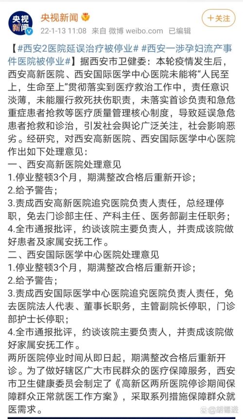 西安市卫健委1月13日宣布对西安高新医院、西安国际医学中心医院做出停业整顿3个月的处罚,引起新一波的舆论反响。西安市卫健委表示,这两家医院未能将“人民至上,生命至上”贯彻落实到医疗救治工作中,未能履行救死扶伤职责等,导致延误急危患者抢救和诊治,社会影响恶劣。很显然,这首先是西安市卫健委对两家医院整改的督促,同时它也可以看做是对舆论的一种交代。