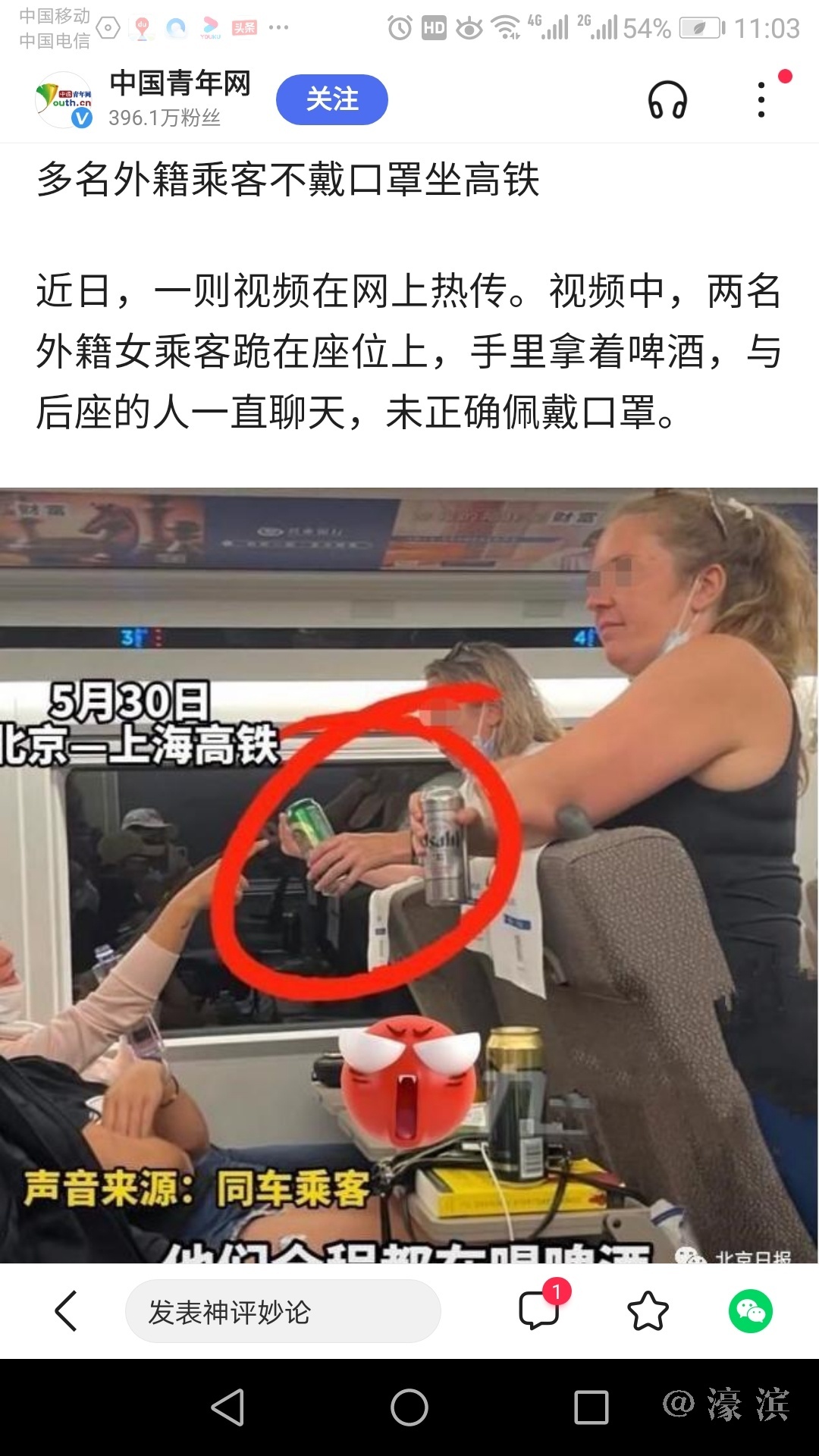 老外一家三口坐高铁全程不戴口罩 列车长:服务行业 没法强制 |