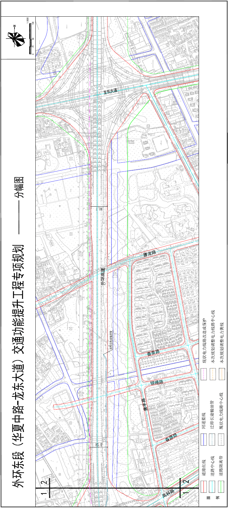 原则同意工程总体布置方案,工程采用“节点跨线桥+地面道路”的布置形式。共设置五座跨线桥,分别为东陆路-凌河路跨线桥、巨峰路跨线桥、东靖路跨线桥、俱进路跨线桥以及洲海路跨线桥。