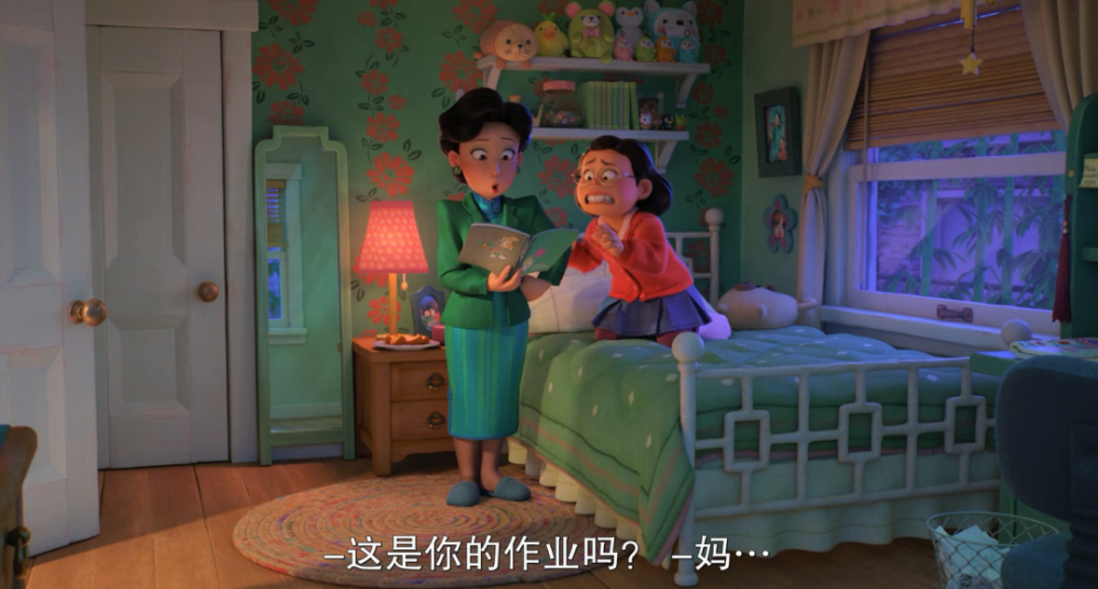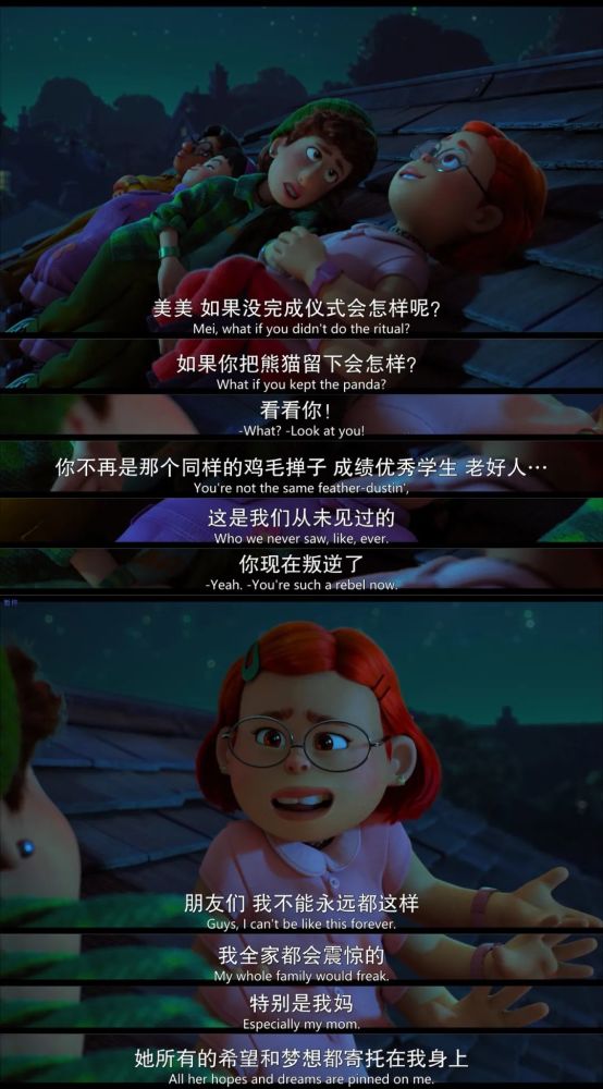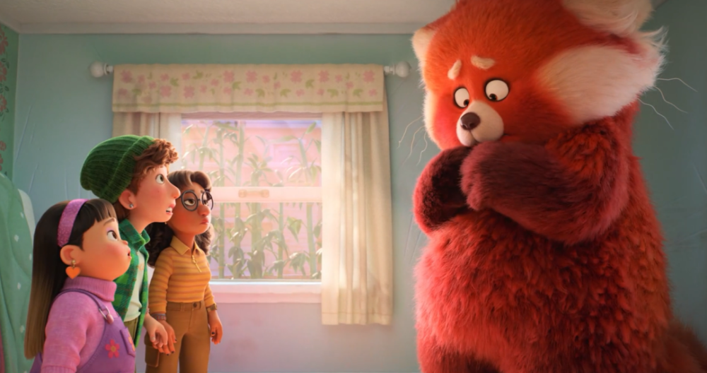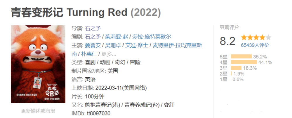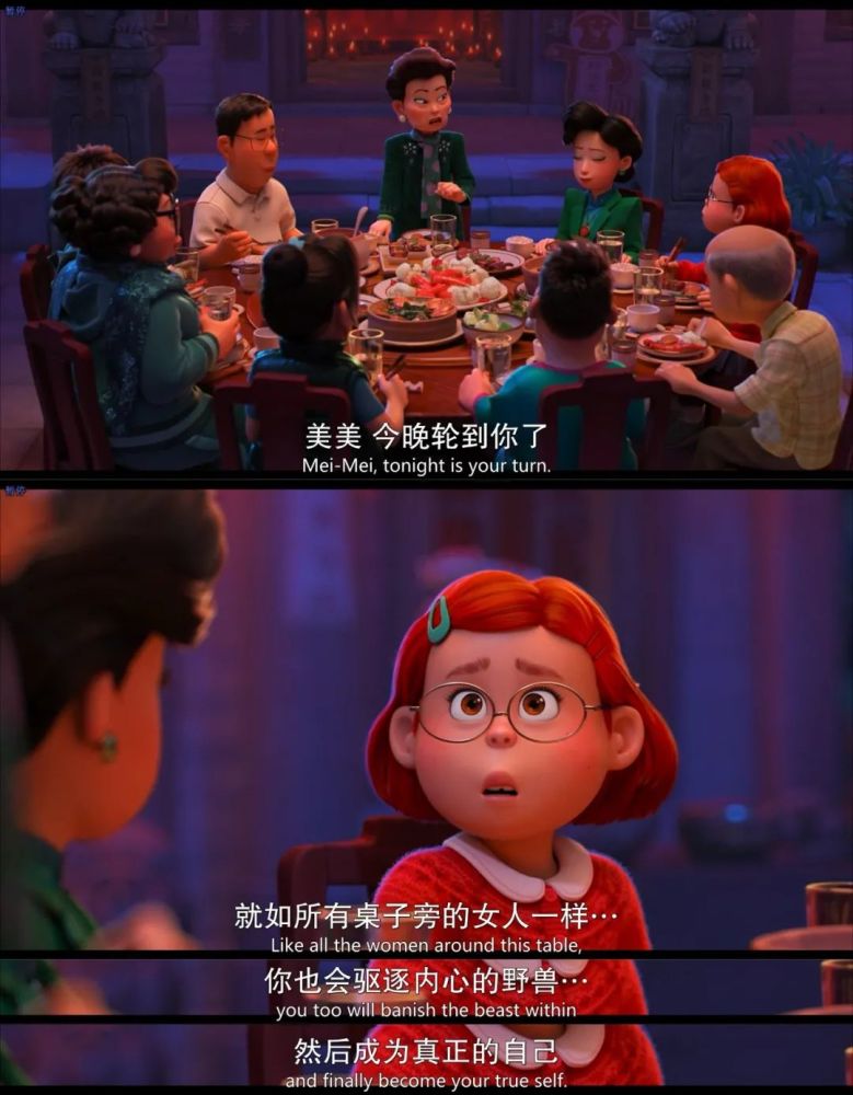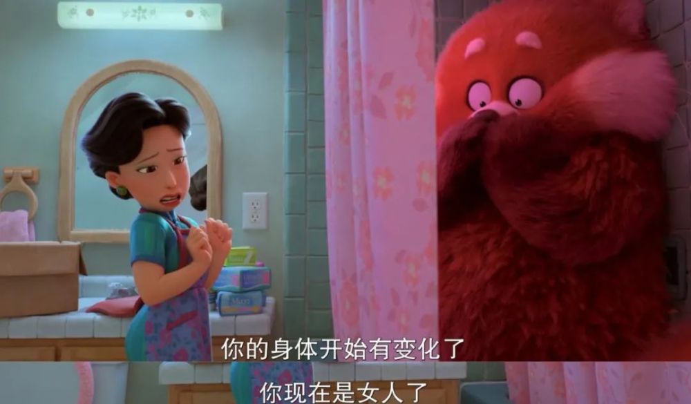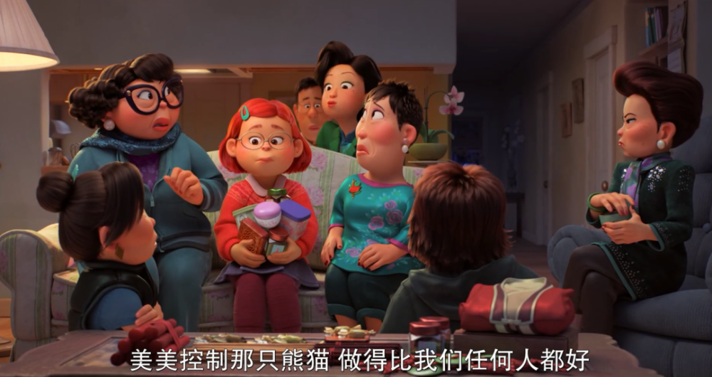 掐指一算,皮克斯动画工作室上一部在北美公映的片子还是2020年的《1/2的魔法》,距今两年有余。 即便如此,其新作《青春变形记》仍然取消了北美院线上映的计划,改为上线流媒体Disney+。 这波操作引起了皮克斯内部的反对声音,他们对凭借本片回归大银幕期待已久。 当然,家大业大的迪士尼有着诸多考量,比如疫情对院线的冲击,比如要顾及Disney+的长线发展。 但迪士尼也未安排本片到国内送审。 至于原因,可能是担心华裔题材触碰到敏感点,也可能是有过几次送审失败的经验,这回干脆省点事。 具体的咱不知道,也不敢问。 总之,略去这些题外话,咱还是来聊聊这部被“战略性放弃”的新片。 聊聊本片是如何以正确的姿势戳中观众的萌点,以及它未来可能带给创作者们的启示。 *友情提示,以下内容包含剧透,请介意的朋友谨慎阅读。 01. 众所周知,皮克斯出品的动画电影向来是观众友好型。 一方面,世界观设定有趣、新奇,时常让人大开眼界。 另一方面,剧情不会太烧脑,标准的老少皆宜。 像《青春变形记》的故事也并不复杂。 片子主要讲述了突然觉醒变身小熊猫能力的李美琳需要应对青春期的诸多难题,试着化解家庭内部矛盾的成长故事。 剧情,要从一起“早恋乌龙事件”说起。 步入青春期的美美明明和其他人一样,渴望与异性接触,却拒绝承认。 只有关上门,躲在床底下,她才敢放肆地沉浸在玛丽苏幻想里,画些少女心爆棚的漫画。 有种磕CP的境界,叫我磕我自己 意外发现了女儿藏在床底下的“小黄漫”,母亲阿茗大发雷霆,立马冲到超市,警告戴文别再靠近她的宝贝女儿。 说完,还把那叠“罪证”狠狠拍在桌上。 那些羞于启齿、连最好的朋友都不敢分享的性幻想居然被人当众展示?! 惨遭公开处刑的美美当场大脑宕机。 这一晚,美美做了噩梦。 梦里,有火焰、祭台、诡异的动物,还有喷薄而出的红色光柱。 醒来以后,她发现自己变成了散发着奇怪味道的红色熊猫。 很有意思的是,创作者将多种意象做了巧妙的勾连,为变身这一设定留足了多层次、多角度的解读空间。 如导演所说,“小熊猫是青春期的完美象征。在情感或生理等很多方面,红色可以视为这个阶段的代表色。而那种毛茸茸的、成长中的笨拙感,也和青春期的微妙尴尬相似。” 红色,是“月经初潮”的隐喻。 不知所措的美美躲进卫生间,阿茗的第一反应就是:女儿来例假了,然后匆忙为她备好了一切。 作为女性,适应生理期(变身)带来的不适和变化,乃成长的必经之路。 以及变身期间,唯恐被人发现的躲闪和尴尬,也恰好对应了月经羞耻。 理论上,主角家族的女性成年时才会继承来自先祖的变身天赋。 但为了不触碰母亲的“逆鳞”,不被他人嘲笑,美美被迫压抑对于异性的好奇与憧憬,克制内心的欲望。 结果,引起了某种报复性的反弹,导致欲望的化身——红色熊猫提前觉醒。 得知真相的美美,自暴自弃地躲在家里,等待封印仪式的到来。 此时,是及时赶到的朋友们帮她敞开了心扉——美美本以为会被嫌弃,没想到大家上来就是一顿“暴风吸入”。 这么毛茸茸的尾巴,谁会不想rua呢? 在朋友的鼓励下,回到学校的美美靠着毛茸茸的大尾巴征服了身边人,顺利开启了一波钱包收割计划。 花季少女化身小熊猫,靠卖萌走向人生巅峰。 故事至此,透露着浓浓卖萌片的味道,主角面临的成长危机也未脱离青春轻喜剧的套路。 但看过导演石之予前作《包宝宝》的观众都不会忘记,导演是如何利用最萌的画风,讲述最细思恐极的情节。 短片中,母亲把小包子(宝贝儿子的谐音)视若珍宝,恨不得整天把他捧在掌心里。 然而眼看着孩子日渐叛逆,无法接受现实的母亲眼含热泪,一口吞下了企图逃离的包宝宝。 这一幕,显然是在批判中国式家长过度的保护欲与控制欲对子女的独立人格造成了压迫,乃至精神上的侵蚀。 某种程度上,《青春变形记》可谓《包宝宝》的威力加强版,它延续了前作对于中式亲子关系的探讨。 基于创造上的成熟,影片不再需要借由“吞噬”这么直白的隐喻和动作,也能勾勒出“爱之牢笼”的轮廓,还顺势将悲剧根源的探索向前推进了一步。 电影里,母亲阿茗事无巨细地照顾着女儿,一心盼她成才,光耀门楣。 凡是与学习无关的事,她都坚决反对,认为那是不务正业。 她先是自作主张捅破了女儿的性幻想,接着又追到学校,间接导致其内心崩溃。 当对方即将走出困境,她又猛踩了一脚刹车。 一边是象征成人礼的爱豆演唱会,另一边是殷切又沉重的母爱。 主角就如同一只任人操纵的风筝,只要母亲扯紧手中的丝线,就注定无法自由飞翔。 与此同时,主角还需要面对另一股来自家族的强大阻力。 按照传统,每位继承者都必须在血月时接受封印仪式,否则将面临失控的危险。 得知美美觉醒的消息,远在海外的七大姑八大姨齐齐赶来,准备合力封印她的“熊猫之力”。 尤其是外婆,不断施加压力,要她乖乖听话。 全家人里只有爸爸愿意站在美美这边,安慰她每个人都有很多面,与其逃避,不如接受现实。 从这个角度来看,红熊猫就是主角心中的野兽,代表更真实、坦率的自我。 故事最重要的转折点,就在于主角如何做出抉择: 留下野兽,意味着拥抱自我,反抗家庭的权威意志; 封印野兽,意味着接受世俗的枷锁,继续扮演符合世俗期待的模范生。 在仪式即将结束的最后一刻,美美决定遵从内心,从此与身体里的野