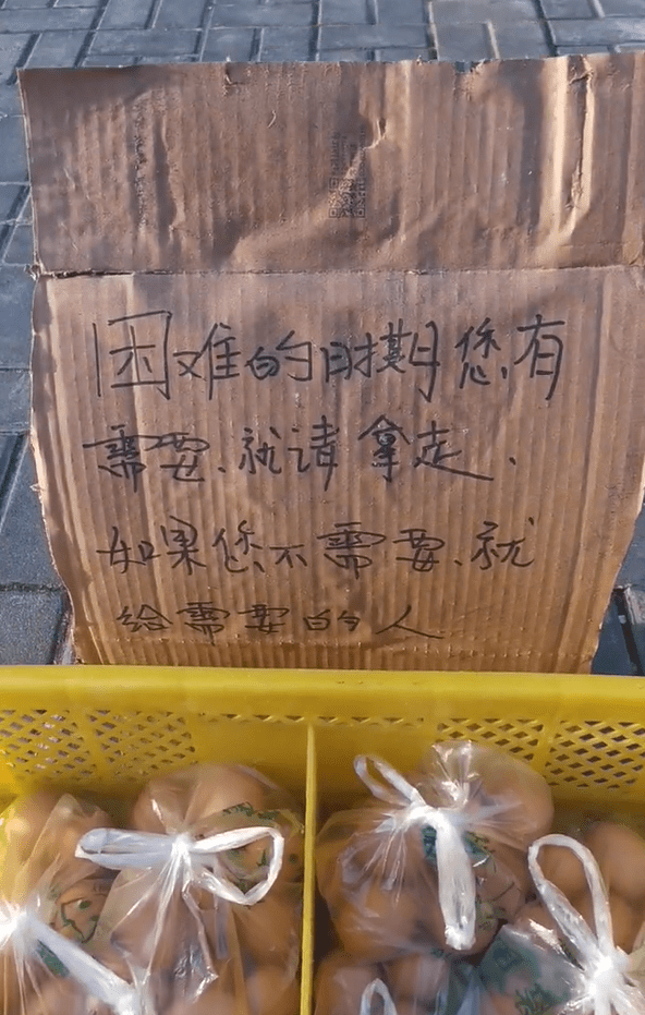 在长春市同光路与牡丹街交汇处,有一家名为“破瓦寒窑”的地摊烧烤店。3月29日清晨,在这家烧烤店门前,有人整整齐齐摆放了10份鸡蛋,纸箱上写着:“困难时期,如果您需要,就请拿走鸡蛋……” 九派新闻记者了解到,放鸡蛋的好心人是烧烤店店主姜先生。自3月9日以来,长春市一直处于疫情防控状态,姜先生经营的烧烤店、火锅店均已暂停营业。在管控之前,烧烤店购进了一批备用食材,其中鸡蛋大概有五六箱左右,每箱40斤。 长春市疫情管控近月余,居民外出买菜大多采用线上购买的方式,不如之前线下“随需随买”方便。姜先生告诉记者,他在网上看到一些老人买菜异常艰难的情况,心里十分难受。恰好店内仓库有一些富余的鸡蛋,姜先生就想到了这个“免费领取鸡蛋”的办法。 姜先生将领取鸡蛋的点位设在自己烧烤店门口,每天供应十份鸡蛋,每份鸡蛋10个。每日清早,姜先生将满满一筐鸡蛋放在店门口,晚上再来回收空箱子,第二天再放满鸡蛋…… 姜先生告诉九派新闻,每天晚上拎着空箱子往家走的时候,总觉得特别开心。“我觉得我能为住在附近的居民做一点力所能及的小事,能帮上大家就很开心,哪怕一天只帮了10个人。” 被问及为什么不派人在鸡蛋摊位看守,姜先生回答说,这是为了顾及拿鸡蛋人的面子。如果有人看守的话,那些真正需要帮助的人或许就不会领取鸡蛋了,这就失去了做这件事的意义。他也相信,疫情当头,没有人占别人做好事的便宜。 “我是一个普通开餐馆的,太大的事情做不了,只想着尽力为长春这个城市传达一点力所能及的善意。”姜先生称,自己家的库存鸡蛋还可供投放10天左右,希望能真正帮助到百余位急需鸡蛋的人。
