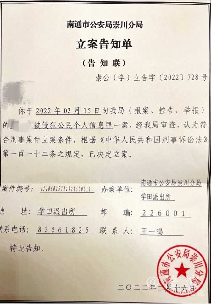 #南通黄某成涉嫌侵犯公民个人信息罪被警方立案侦查并采取刑事强制措施# |