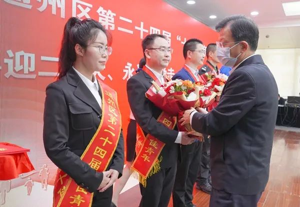 5月6日,市委常委、区委书记张建华为区第二十四届“十佳青年”颁奖。徐浩翔摄【原标题:张建华参加区第二十四届“十佳青年”颁奖暨“喜迎二十大、永远跟党走、奋进新征程”主题座谈会,勉励全区广大青年——学习不停步 奋斗不停步 奉献不停步 努力创造出无愧于青春、无愧于时代的新业绩】