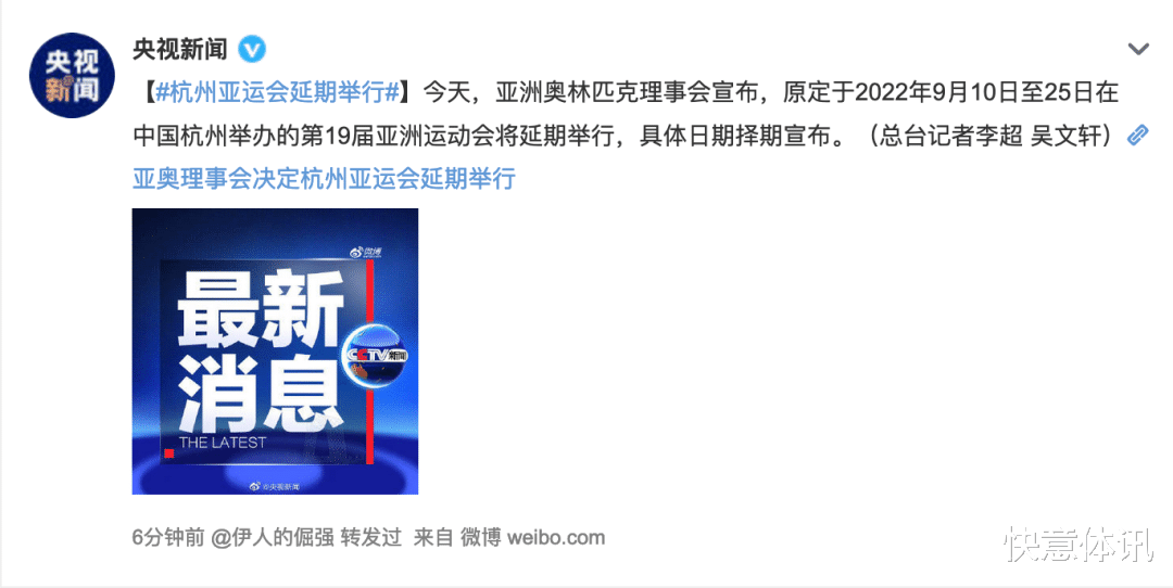 北京时间5月6日下午,2022年第19届亚运会组委会发布了官方声明:原定于今年9月10日至25日举行的杭州2022年第19届亚运会将延期举办。
