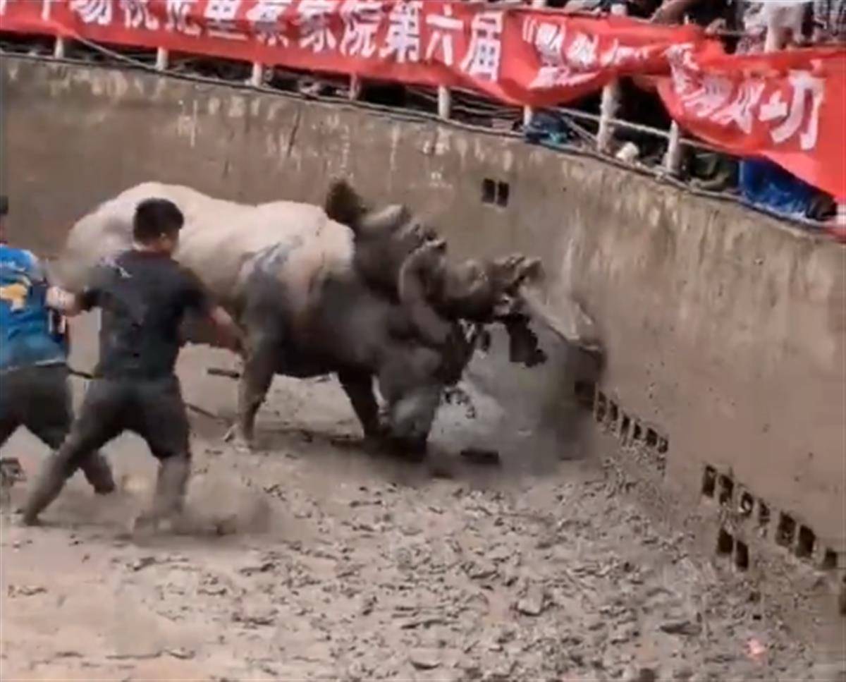 5月28日,贵州一斗牛场内,一男子被一头健硕的斗牛反复顶撞,现场多人施救。29日上午,极目新闻记者从当地派出所了解到,被顶撞男子已经送医治疗,比赛已停止。 网传视频显示,在一个斗牛场地内,一男子遭一头健硕的斗牛反复顶撞,男子满身是泥蜷缩在地上,还一度被牛高高顶起摔下。为助其脱险,一工作人员用力向后拖拽男子,另有多人用力拉着斗牛的尾巴。斗牛场内,悬挂着写有“某某斗牛场祝龙里蔡家院第六届黔胜杯圆满成功”字样的大型条幅。 男子遭斗牛反复顶撞(图片来源 视频截图) 上述视频发布后,有网友留言称,斗牛场地一男子受伤被送往医院治疗,斗牛比赛取消。 据了解,上述视频事发于贵州省黔南州龙里县龙山镇一斗牛场内。5月29日,当地一居民告诉极目新闻记者,“28号出了点小意外,比赛取消了。”但关于该事件的其他情况,该居民不愿多讲。另有其他居民也向记者证实,比赛确实已取消。 网传的宣传海报显示,比赛全名为“贵州龙里余下村蔡家院第六届黔胜杯牛王争霸赛”,比赛时间为5月27日至29日,最高奖金达10万元。 29日上午,极目新闻记者致电辖区龙山派出所,工作人称确有男子在28日的斗牛比赛中受伤,“举办方已经把他送往医院治疗,比赛也已经停了。”被顶撞的男子是什么人,为何会进入斗牛场内?该工作人员称,因不是当日值班人员,暂不清楚具体情况。