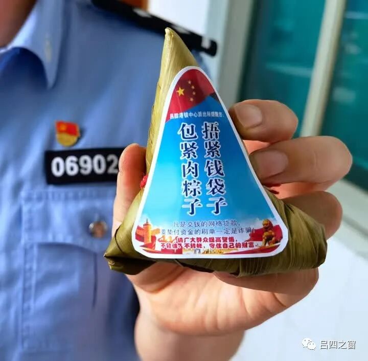 用的是真情叶,包的是平安米,扎的是警惕绳,许的是无诈愿。启东民警将“养老反诈顺口溜”制作成“反诈小贴士”贴在粽子上,既“浑然一体”,在色彩上又十分醒目。一个个普通的粽子,在民警“费尽心思”的设计下,摇身一变成为了“反诈利器”。