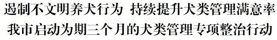 针对当前工作中存在的问题,结合《南通市文明行为促进条例》的实施,会议部署开展为期三个月的犬类管理专项整治行动,通过整治形成一套可操作性强的长效管理机制,确保实现不文明养犬行为有效遏制、无主犬流浪犬数量有效压降、犬只登记免疫率应免尽免、社会各界对犬类管理满意率和涉犬纠纷等调处满意率持续上升的目标。
