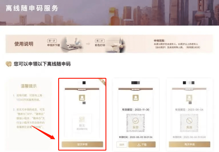 不使用智能手机的老年人 考虑到不使用智能手机的老年人,无法通过扫“场所码”进行健康核验的情况,目前提供了纸质离线“随申码”加身份证的方案,用于老年人等特殊人群的出行健康核验凭证和场所登记。 60周岁及以上的老年人,可在行政服务中心、社区事务受理中心和部分银行的自助终端机申领离线“随申码”(有效期为180天),公共场所工作人员用手机“随申办”移动端,扫市民的纸质离线“随申码”进行健康状况核验,并查看身份证进行手工登记。目前,离线“随申码”已申领44.3万张。 市大数据中心副主任朱俊伟说,正在进一步开发设计,市民很快可以直接在家里电脑操作申请离线“随申码”。同时,朱俊伟提醒,离线“随申码”可以由亲属代领,使用时,必须和本人身份证一起使用。 对于部署“数字哨兵”的场所,可通过刷实体身份证一次完成健康核验和场所登记。 针对老人外出乘坐公交地铁的需求,市大数据中心也积极配合交通委、交通卡公司研究解决方案。目前,交通卡公司已启动交通卡持有人信息关联绑定、查验纸质核酸阴性证明等方式,为老年群体提供交通出行方案。同时,市民也可通过“随申办”三端“老幼核酸助查”功能,为家中老人查询核酸检测结果。