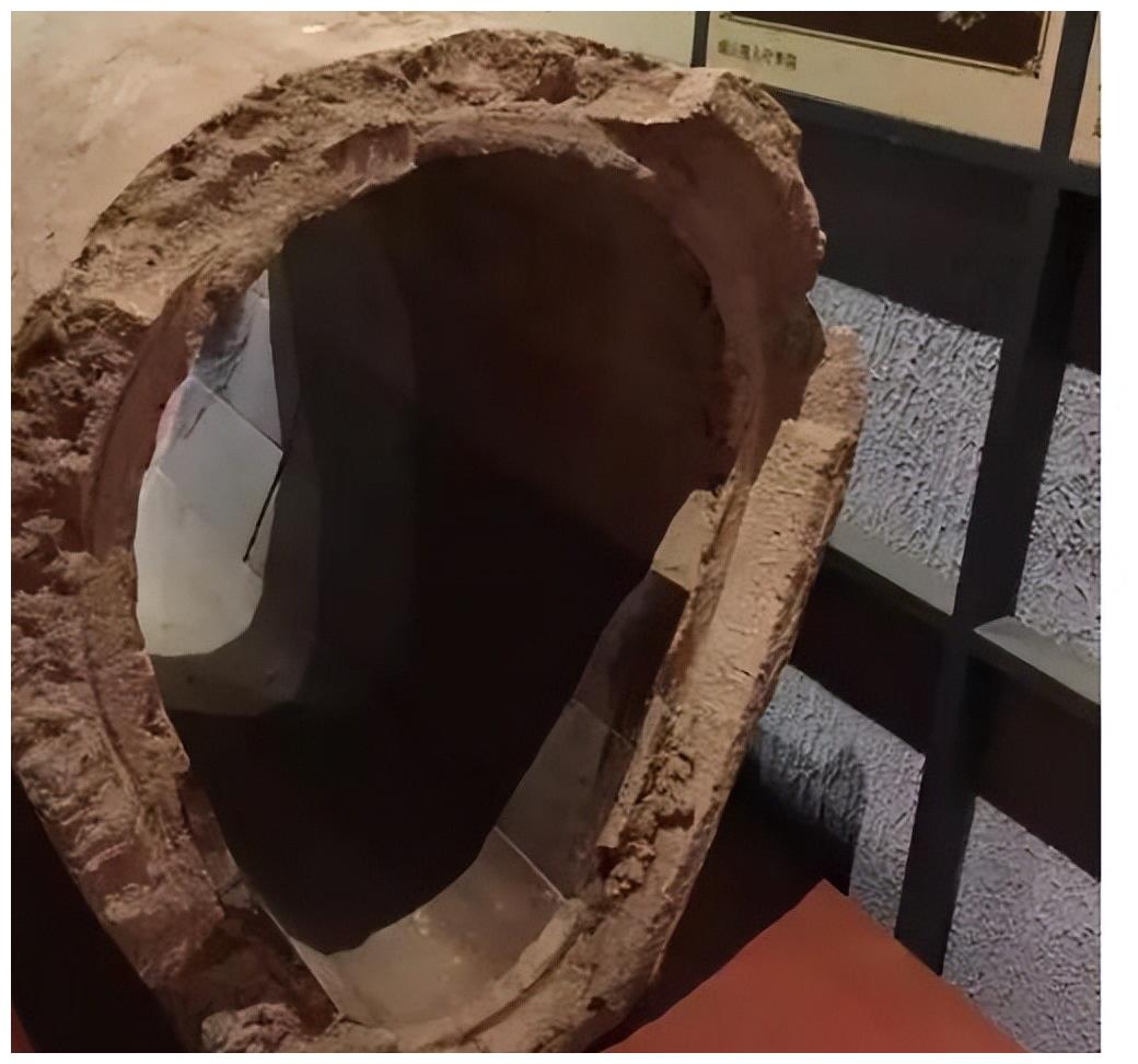 青岛市博物馆保存的一段德占时期青岛下水管道,底部贴有瓷片