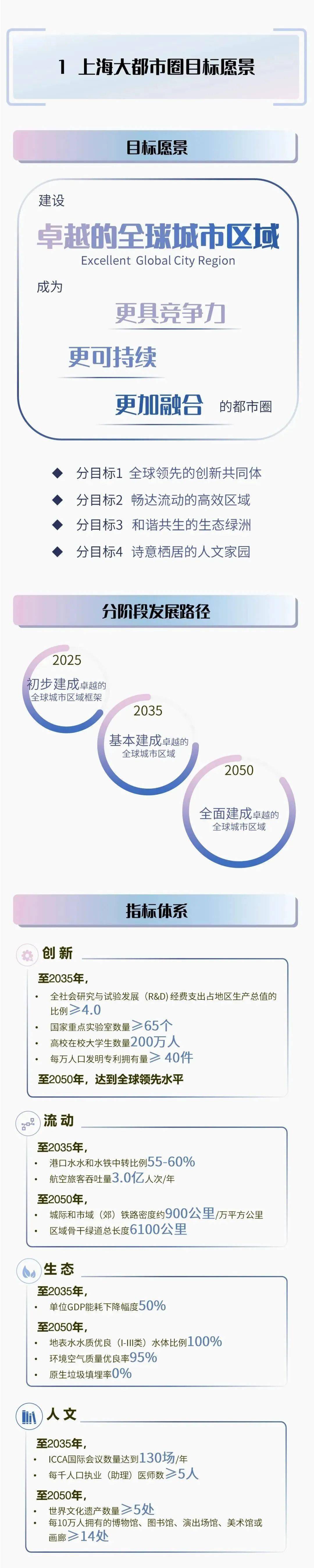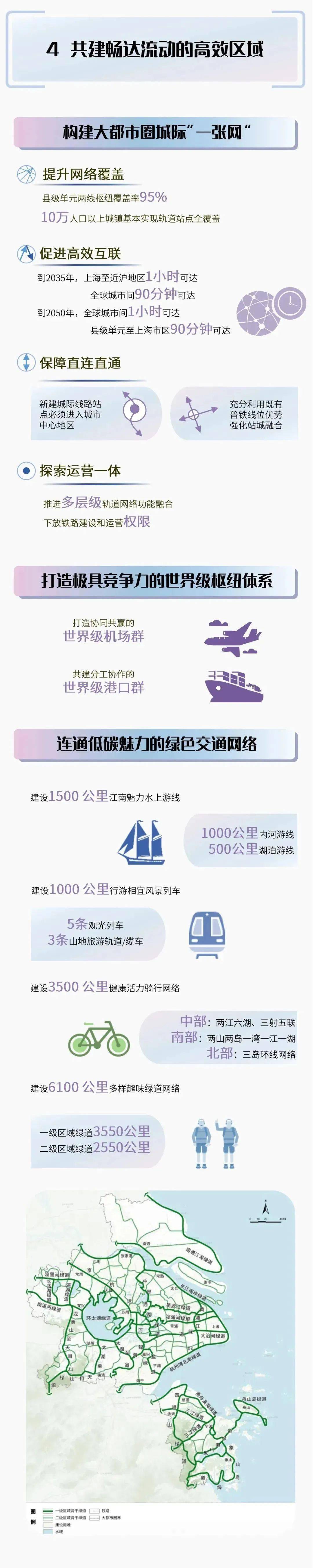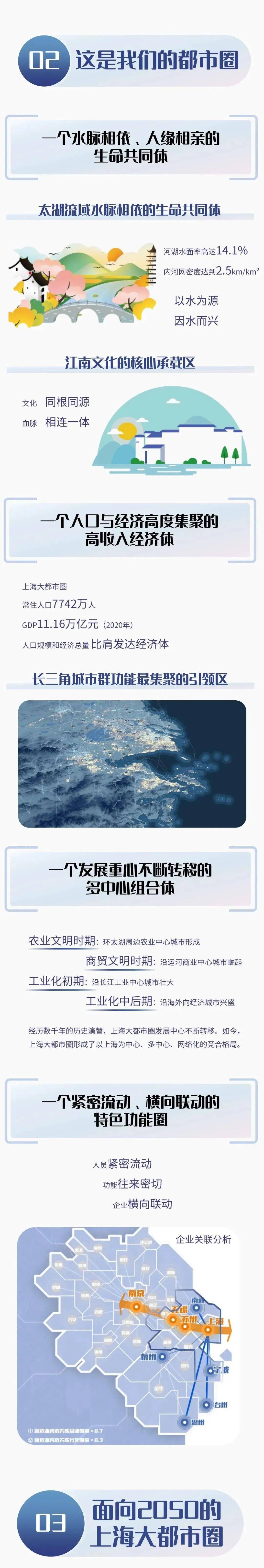 导读 2022年1月,上海市人民政府、江苏省人民政府、浙江省人民政府联合印发《上海大都市圈空间协同规划》。这是沪苏浙两省一市为深入落实长三角一体化发展国家战略,“构建上海大都市圈,打造具有全球影响力的世界级城市群”而携手制定的纲领性文件;也是党中央、国务院《关于建立国土空间规划体系并监督实施的若干意见》颁布实施以来,经自然资源部同意并指导,全国首个由省级地方政府、有关省辖市政府联合编制的跨区域、协商性的国土空间规划。 本文字数:2705字 阅读时间:9分钟 “构建上海大都市圈,打造具有全球影响力的世界级城市群”,是党中央、国务院的重大决策部署。早在2017年12月,国务院在《上海市城市总体规划(2017-2035年)》的批复中明确要求,“充分发挥上海中心城市作用,加强与周边城市的分工协作,构建上海大都市圈”。2019年5月,党中央、国务院印发《长江三角洲区域一体化发展规划纲要》,进一步强调“推动上海与近沪区域及苏锡常都市圈联动发展,构建上海大都市圈”的要求。自然资源部办公厅专门印发《关于开展上海大都市圈空间协同规划编制工作意见的函》,明确支持沪苏浙三地共同开展规划编制工作。沪苏浙两省一市政府高度重视,于2019年8月共同成立了上海大都市圈空间规划协同工作领导小组,印发了《上海大都市圈空间协同规划编制工作方案》,正式启动了规划编制工作。编制过程充分体现了上海与周边八个城市平等协商、共同参与、开门做规划的特点,各城市全面参与了规划编制工作,每个规划阶段性成果均反复多次广泛征求各城市政府、国家相关部委、省级主管部门以及社会专家智库意见,提高了规划编制的科学性。 规划明确,按照党中央、国务院对构建上海大都市圈的要求,经沪苏浙两省一市政府协商同意, 本轮规划将上海大都市圈的规划范围确定为上海市以及周边苏州市、无锡市、常州市、南通市、嘉兴市、湖州市、宁波市、舟山市在内的“1+8”城市市域行政范围,总面积约5.6万平方公里,常住人口约7794万人,分别约占长三角的15%和34%左右。规划期限至2050年,中期至2035年,近期至2025年,衔接“十四五”规划。从区域城市关系来看,上海大都市圈已经突破传统意义上的通勤圈,是以上海为核心,以周边地理邻近性为基础、功能紧密关联性为关键、地理文化认同感为纽带,并兼顾行政治理的空间完整性而构成的“1+8”多中心城市区域。从协同发展特点来看,上海大都市圈各城市文化同源、水脉相依、人缘相亲、产业相通,是一个充满生机活力的区域生命共同体,也是一个整体实力可以比肩世界顶级都市圈的高收入经济体。2021年GDP总规模约1.95万亿美元,约占长三角的50%左右;人均GDP达到2.15万美元。在“双循环”新发展格局下,上海大都市圈具备比肩世界一流的综合经济实力和相对完整、高水平的产业链与供应链,是我国推动国内外双循环、参与全球竞争的重要载体。 规划提出,以本世纪中叶第二个百年奋斗目标为基本依据,以国务院批复明确的上海建设“卓越的全球城市”目标为引领,综合周边城市共同诉求,将上海大都市圈的目标愿景确定为 “建设卓越的全球城市区域,成为更具竞争力、更可持续、更加融合的都市圈”,重点从三个方面强化了上海大都市圈在落实国家战略中的责任和担当。一是在双循环新发展格局中,必须发挥基本单元和战略链接的作用,占据全球产业链、供应链与创新链的核心环节,并从强化资源配置能力、科技创新驱动、自然资源保护、新基础设施建设、新消费培育、高品质公共服务等多个领域进行突破。二是在落实新发展理念的实践中,应该成为全球可持续发展的区域典范,在保护生态格局、城乡协调发展、率先实现碳达峰和碳中和、转变发展路径形成绿色生产方式和生活方式等方面引领区域高质量发展。三是在引领长三角一体化高质量发展方面,上海大都市圈“1+8”城市群必须发挥示范样板作用,成为目标一致、功能互补、要素流动、资源共享、多元融合的空间协同整体。 规划提出, 上海大都市圈将构建“多层次、多中心、多节点”的功能体系和“紧凑型、开放式、网络化”空间结构。在功能体系上,对内紧密一体、对外链接全球。从都市圈全域视角出发,打破市级行政边界,以“1+8”城市的城区及其所属的县(市、区)为基础,聚焦40个功能单元,从生产性服务业、航运贸易、科技创新、智能制造、文化交流等5大全球功能维度,考虑国家战略投放、重要廊道支撑及重大设施建设等因素,加强功能引导,因地制宜、各扬所长。在空间结构上,以空间组织模式转型推动更高质量发展。一是培育多条区域廊道,主要包括沪宁、G60、沪湖、杭甬等4条创新廊道和宁杭、沿江沿海、通苏嘉甬等3条特色功能廊道,作为引领要素集聚、合力联动发展的空间骨架。二是完善区域空间网络,结合主要发展廊道,培育南沿江、北沿江、环杭州湾、沪通-沪甬、西太湖、常泰等多条次级发展走廊,并完善区域交通网络,支撑多中心、多节点间畅联互达。三是构建空间板块协作平台,聚焦跨界地区和战略资源,以环太湖、淀山湖、杭州湾、长江口、沿海地区等五大战略协同区为重点,深化一体化策略机制。 规划聚焦产业、交通、生态、文化等方面,提出了有针对性的规划策略。 一是共塑全球领先的创