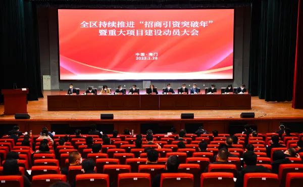 1月28日,春节后上班第一天,区委、区政府召开持续推进“招商引资突破年”暨重大项目建设动员大会,发出了坚持“项目为王”理念的强烈信号,动员全区上下收心归位、只争朝夕,以海纳百川的胸怀抓招商,以强毅力行的干劲攻项目,全面筑牢高质量发展争先进位的坚实支撑,为加速打造“一示范四城市”厚植基础。区委书记郭晓敏出席会议并讲话。区委副书记、区长沈旭东作动员部署。区人大常委会主任成伟,区政协主席黄卫锋等区四套班子领导出席会议。区委副书记徐加明宣读表彰决定。 会议分两个阶段进行,第一阶段举行了全区2023年一季度重大项目开工暨东久新宜(海门)国际智造产业园项目开工活动。今年一季度全区开工(开业)项目25个,计划总投资94.22亿元,其中制造业项目9个、平台载体及科创项目8个、服务业项目8个。位于海门开发区的东久新宜(海门)国际智造产业园项目总投资10亿元,由东久新宜集团投资建设,主要招引欧美先进的高科技和智能制造产业项目。在随后召开的会议上,18个项目集中签约,总投资约130亿元,涉及重大制造业、现代服务业和科创项目。一批项目的开工、开业和签约,为全区经济高质量发展注入了源头活水。 郭晓敏指出,唯有审时度势,方能顺时应势。我们必须认清所处方位,始终保持突破招商引资、攻坚重大项目的高度自觉。科学研判海门招商引资和项目建设面临形势,集中表现在三个方面:实践的感悟,要求我们必须始终把抓招商、攻项目作为重要抓手;激烈的竞争,要求我们必须始终把抓招商、攻项目作为制胜关键;格局的重塑,要求我们必须始终把抓招商、攻项目作为头版头条。全区上下要切实增强危机感、紧迫感,以起步就是冲刺、开局就是决战的姿态,投身到新一年的招商引资和项目建设工作中去,进一步解放思想,提升专业能力,弘扬务实作风,更加聚精会神抓招商、攻项目,持续推动招商引资突破、重大项目落地,把交通优势转化为项目建设的优势、发展的胜势,为海门真正实现跨江争雄、打造“现代化建设示范区”提供坚实支撑和强劲动力。 郭晓敏指出,唯有把准方向,方能行稳致远。我们必须锚定奋进目标,全面掀起突破招商引资、攻坚重大项目的滚滚热潮。招商引资要聚集“重点”,全面落实《海门区持续深化“招商引资突破年”实施方案》等系列文件要求,选派精兵强将投入招商引资主战场,紧扣重特大项目、外资项目、产业链项目等重点领域,全力推动项目数量大突破、质量大提升。项目攻坚要紧扣“节点”,按照“在谈项目快签约、签约项目快落地、开工项目快建设、在建项目快达效”的原则,一着不让抓转化,一天不误抓进度,一步不落抓达产。政务服务要突破“难点”,持续深化“营商环境提升年”活动,政企沟通要“零距离”,要素保障要“零障碍”,懒政怠政要“零容忍”,全力保证国企敢干、民企敢闯、外企敢投。 郭晓敏强调,唯有真抓实干,方能成就精彩。我们必须奏响“四敢”最强音,更好汇聚突破招商引资、攻坚重大项目的磅礴力量。“干部敢为”,就是要全面放开手脚、干事创业;“地方敢闯”,就是要全面比学赶超、大干快上;“企业敢干”,就是要全面稳定预期、提振信心;“群众敢首创”,就是要全面释放创造潜力、创新智慧。全区上下要坚定落实中央和省委决策部署,把蕴藏在干部、地方、企业、群众身上的智慧和力量集中到招商引资和项目建设中来,真正让“干部敢为、地方敢闯、企业敢干、群众敢首创”在江海大地蔚然成风,全力推动招商引资、项目建设取得新突破。 沈旭东在动员部署时要求,要凝聚共识,进一步增强抓项目促发展的责任感和紧迫感,埋头苦干、猛攻项目,全力以赴招引一批大项目、好项目。要精准出击,持续推动招商引资实现大突破,锚定主要目标和重点任务,围绕“1234”工作总抓手,更加注重外资招引、项目质量、高效服务、项目信息拓展、部门招商、产业链招商,全面掀起招商引资新攻势。要加快建设,确保项目考核稳居南通第一方阵,优化考核细则,强化过程把控,优化要素配置,全力推动项目快落地、快开工、快达产。要强化统筹,进一步加大服务保障力度,加强组织领导,提升“客户体验”,做优政务服务,从头抓紧、紧张快干,以“天天有客商、周周有签约、月月有活动、季季有开工”的工作节奏和浓厚氛围,推动项目招引建设取得更多丰硕成果。 会上,表彰了2022年度全区招商引资先进集体和个人。各区镇、投资服务中心、科技招商中心、各驻外招商局、重点领域招商攻坚小组、各产业链牵头单位递交了2023年招商引资和重大项目建设工作目标责任书。6名代表作交流发言。 来源:海门融媒