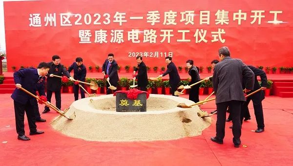 图为通州区2023年一季度项目集中开工暨康源电路开工仪式现场。 2月11日,我区在南通高新区举行2023年一季度项目集中开工暨康源电路开工仪式,动员全区上下以“开年就是开工、开工就要实干”的奋进姿态,以“敢为、敢闯、敢干、敢首创”的担当作为,全力跑出项目建设加速度,冲刺经济发展开门红。市委常委、区委书记张建华出席仪式。