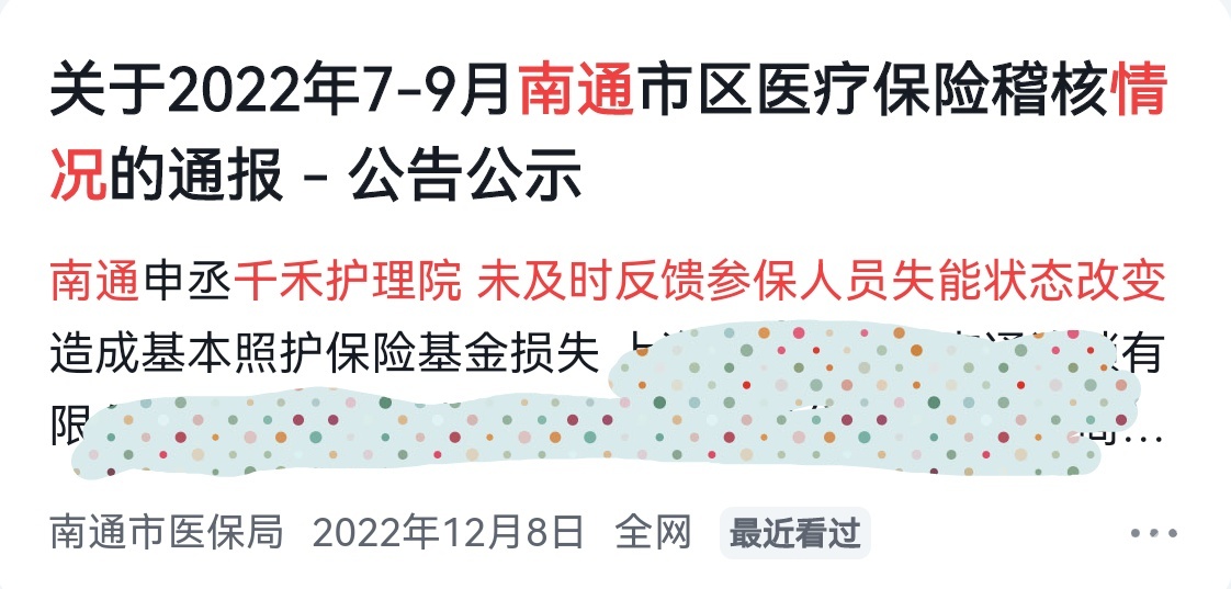 [静海杂谈] 千禾护理院又被南通市医保局责令整改!!!!!! |