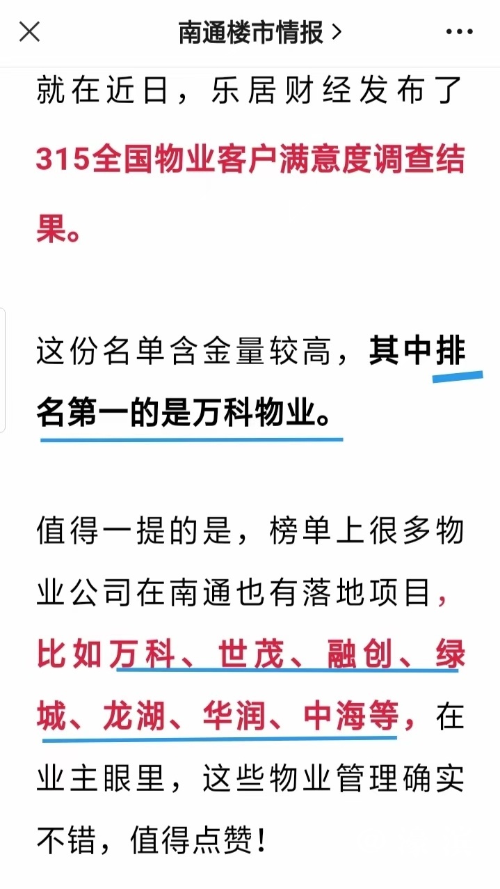 [新闻快讯] 南通小区物业红黑榜发布!万科、中南等上榜! |
