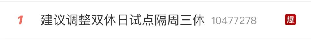 今天, 关于休假的问题, 屡上热搜。 还有一条提案冲上了热搜, 显示“爆”。