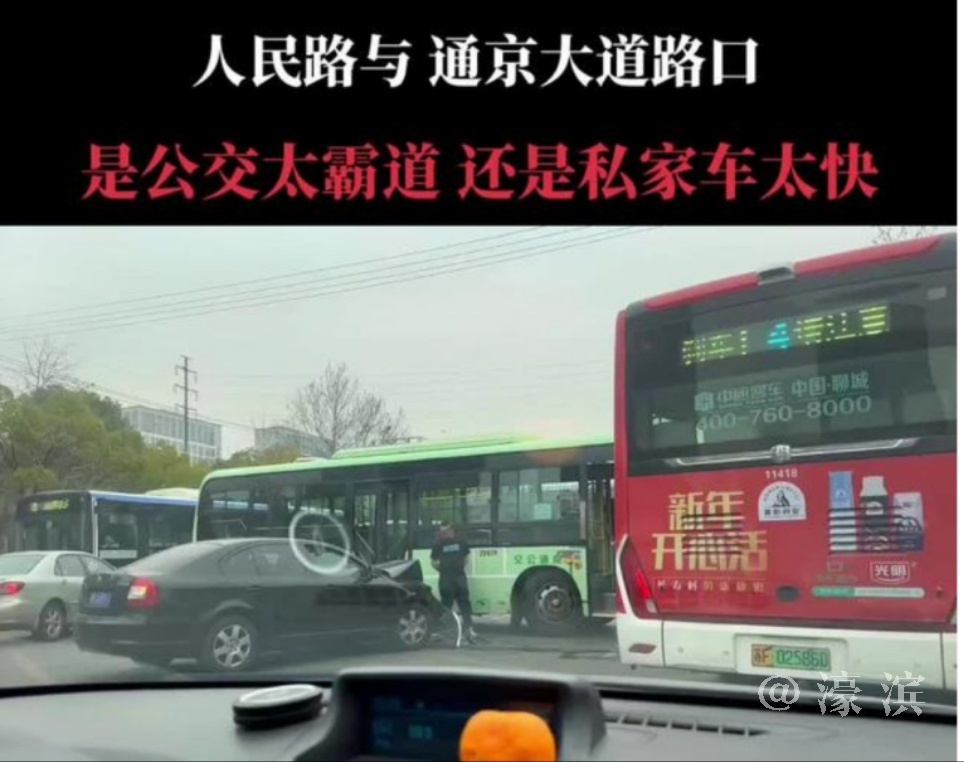 [随便港港] 南通人民路与通京大道路口,一辆私家车撞上公交车,车头严重变形 |
