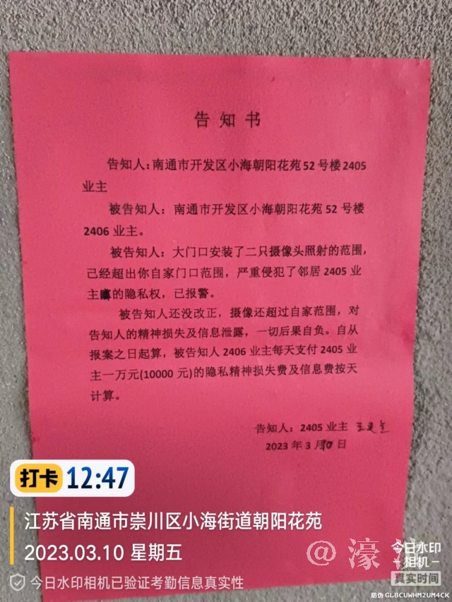 [网友评论] 南通市开发区小海朝阳小区有位住户是否亏心事做多了,家门口按装这么多摄像头 |