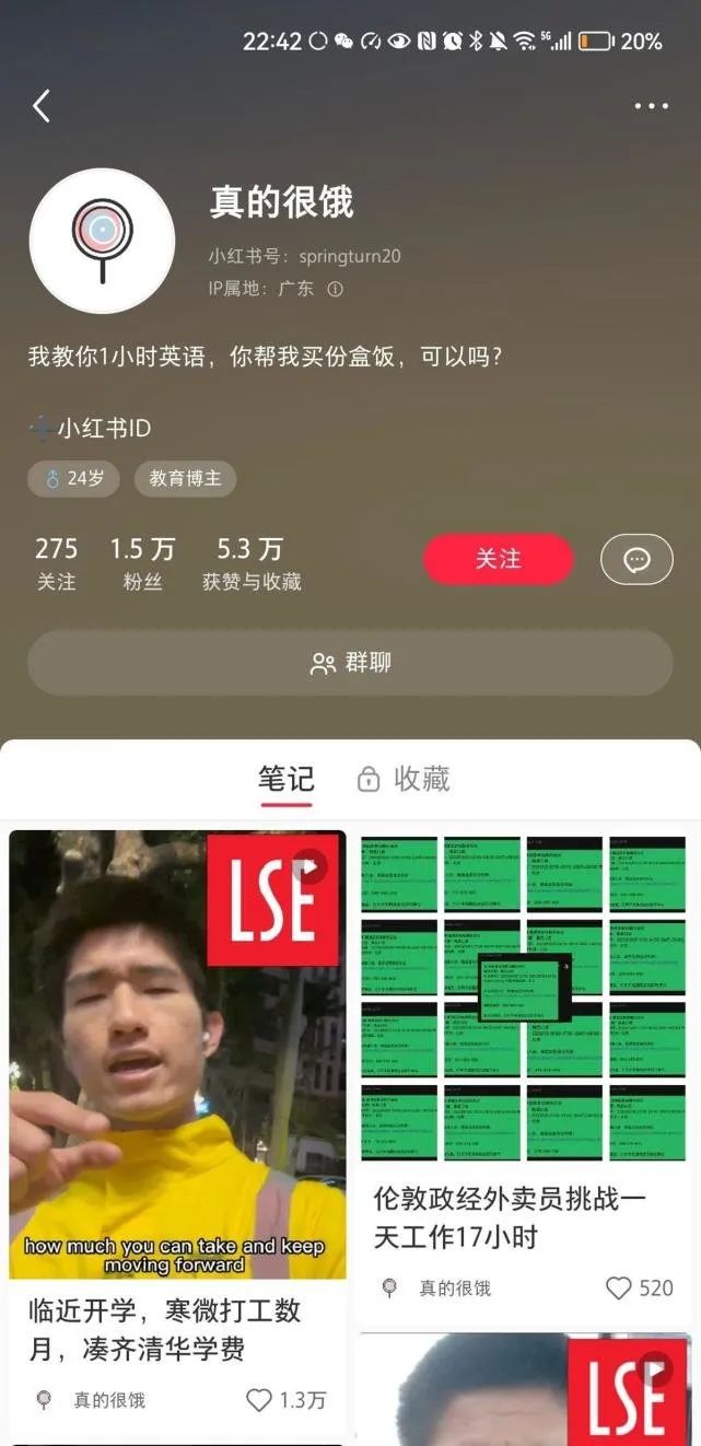 不过,记者注意到,莫明墉3月10日的视频火了以后,他却将去年12月11日的视频置顶,并配文:“伦敦政治经济学院毕业后选择了做英语老师,后来价格降到了50元/小时也招不到学生。当时真的很饿,所以就去送外卖了。”