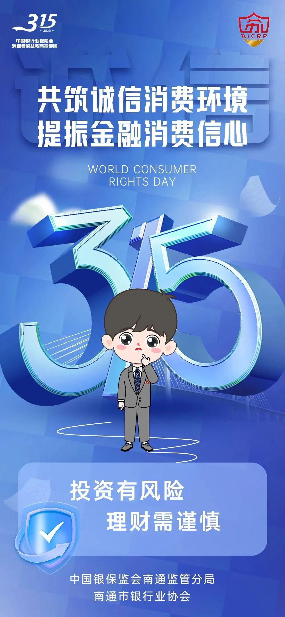 南通市银行业协会在此提醒广大金融消费者要谨慎科学合理投资。作为金融消费者,要全面了解产品信息,认真评估产品是否符合自身需求及风险承受能力,选择适合自己的理财产品,切勿盲目投资。