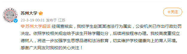 [网友评论] 开除学籍!苏州大学深夜通报 |