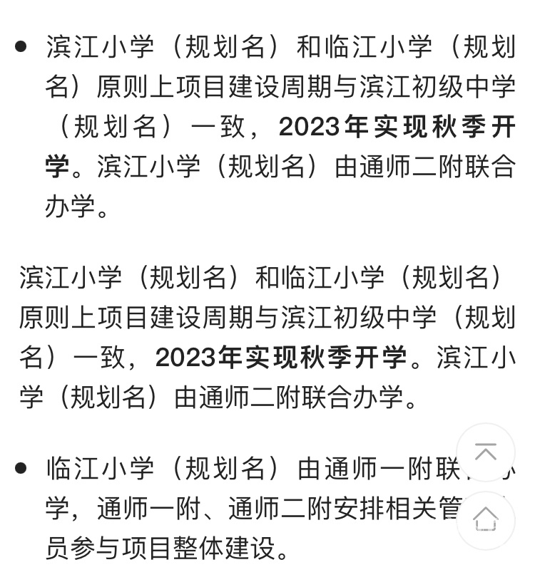[百姓民声] 招商滨江玺对口的通师二附滨江小学还建吗? |