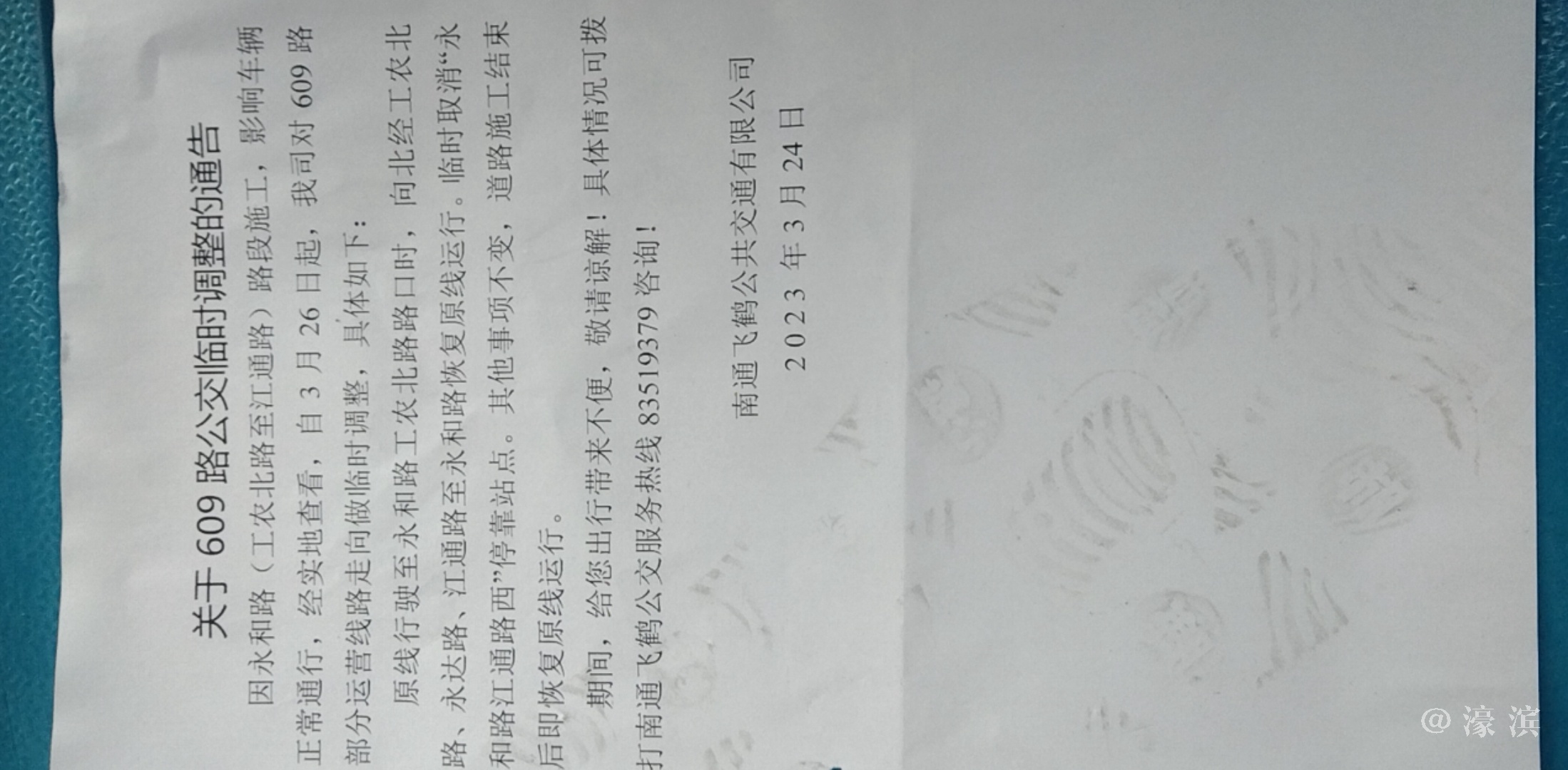 [新闻快讯] 南通飞鹤公交609路临时调整通告 |