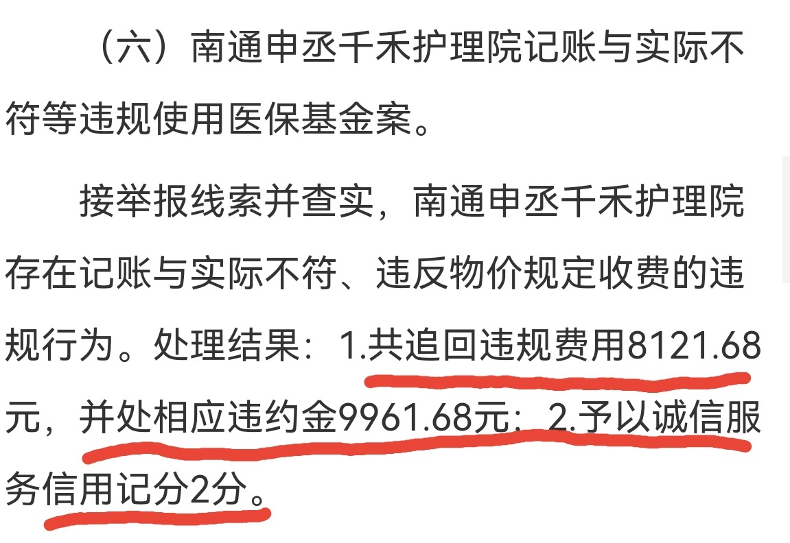 2022年10月,海门区医保部门查实,海门复海医院存在诱导住院、低标准住院、过度治疗等违法行为,造成医保基金损失153339.35元。