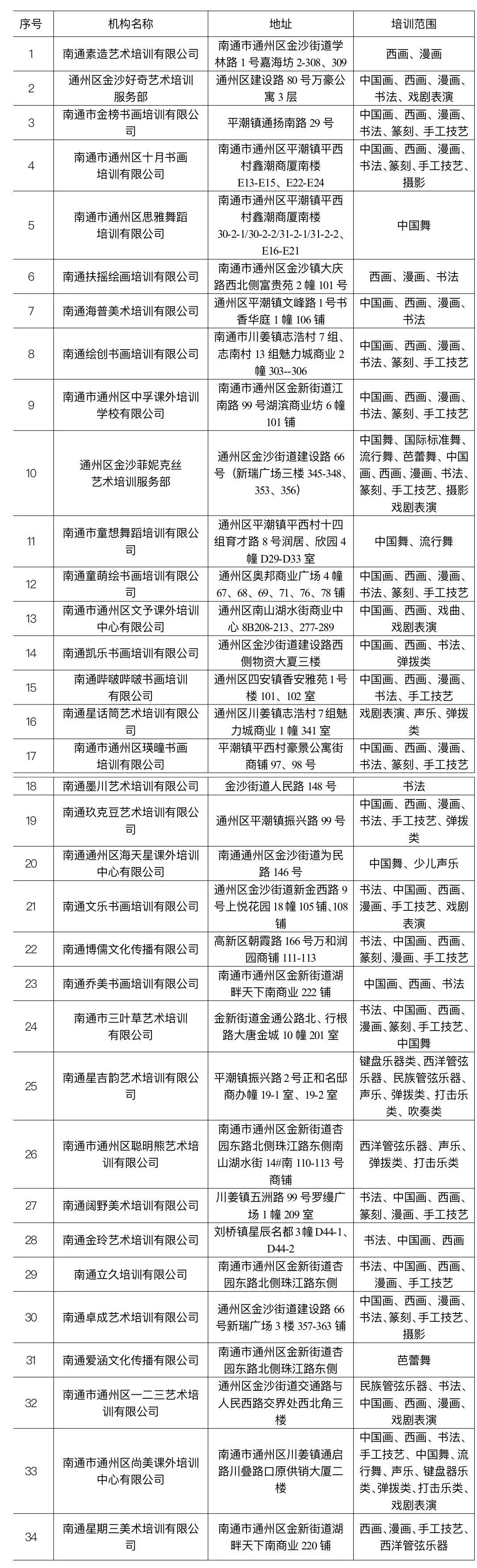 [新闻快讯] 关于通州区文化艺术类校外培训机构(第一批)名单的公告 |