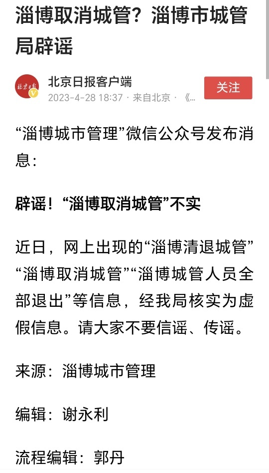 [新闻快讯] 淄博真取消城管了,破天荒 |