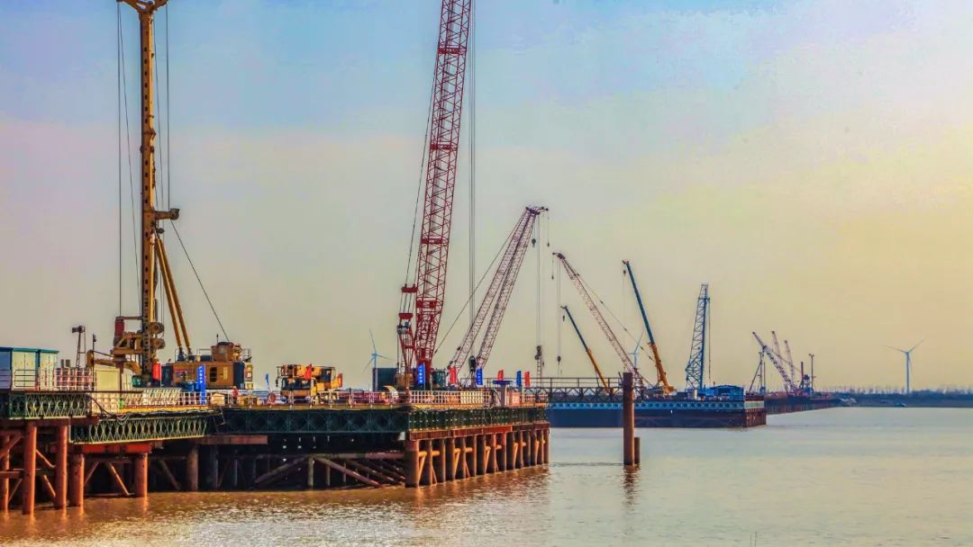今年是崇启公铁长江大桥建设的开官之年,5月正值施工黄金期。记者了解到,大桥南北两岸近2公里栈桥铺设完成、水上钻孔平台安装完成。目前,项目正在进行水上和南北岸公铁合建段引桥先行用地范围内钻孔桩施工。 新建沪渝蓉高速铁路上海至南京至合肥段是国家“八纵八横”高速铁路网沿江高铁通道的重要组成部分。项目承建起讫里程长度为23.17公里。2022年11月底,沪渝蓉高铁正式开工,其中连接启东到崇明的关键工程——崇启公铁长江大桥,是在建世界最大跨度公铁两用无砟轨道高速铁路斜拉桥。