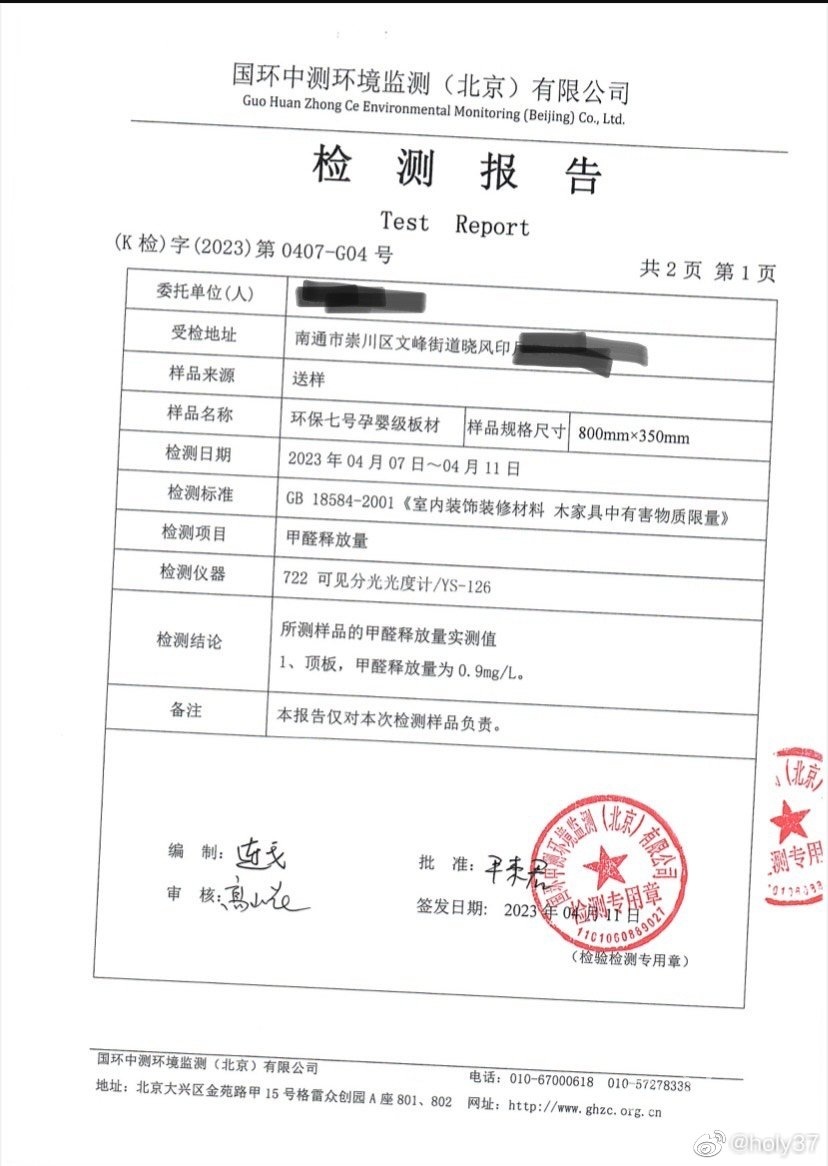 [焦点爆料] 某全屋定制品牌,商家承诺ENF级,实际检测只有E1 |