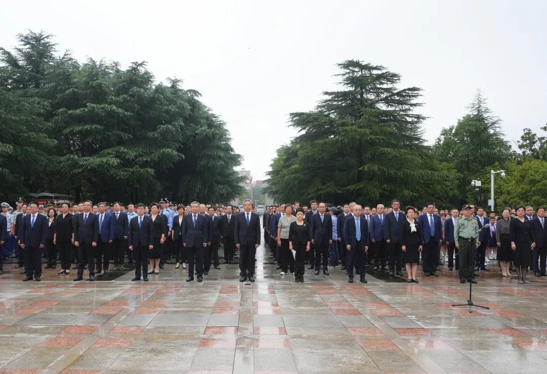 市委书记、市人大常委会主任吴新明,市委副书记、市长张彤,市政协主席黄巍东,市人大常委会常务副主任、党组副书记庄中秋,市委副书记、政法委书记沈雷等市四套班子领导与各界代表一起,深切缅怀革命先烈,不忘初心、牢记使命,奋力谱写“强富美高”新南通现代化建设新篇章的信心和决心。 南通市烈士陵园内,青松挺拔、庄严肃穆,鲜艳的五星红旗高高飘扬。巍然耸立的革命烈士纪念碑前,“革命烈士永垂不朽”八个大字熠熠生辉,“长明灯”熊熊燃烧,象征革命烈士的精神薪火相传、代代不息。