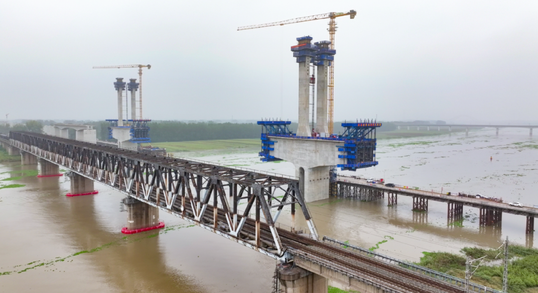 9月28日,淮宿蚌城际铁路跨淮河矮塔斜拉桥183号墩主塔完成封顶,标志这座淮河上最大跨度的铁路桥梁4座主塔全部完成封顶,大桥施工建设取得阶段性进展。
