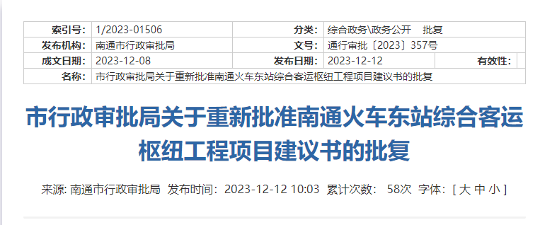 [新闻快讯] 位于通州!南通火车东站有了最新消息 |