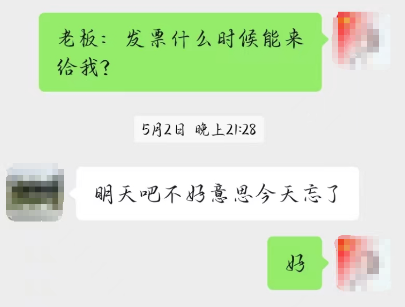 近日,有网友爆料,自己在南通船长酒吧吃顿晚餐竟遭到店主“诅咒”? 据了解,5月1日,网友一家人在南通船长酒吧用餐,付款后向商家索要发票,对方表示财务不在并答应第二天给到,结果第二天对方又说“今天忘了”,第四天又以“财务休息”搪塞,直至5月6日才给到发票。