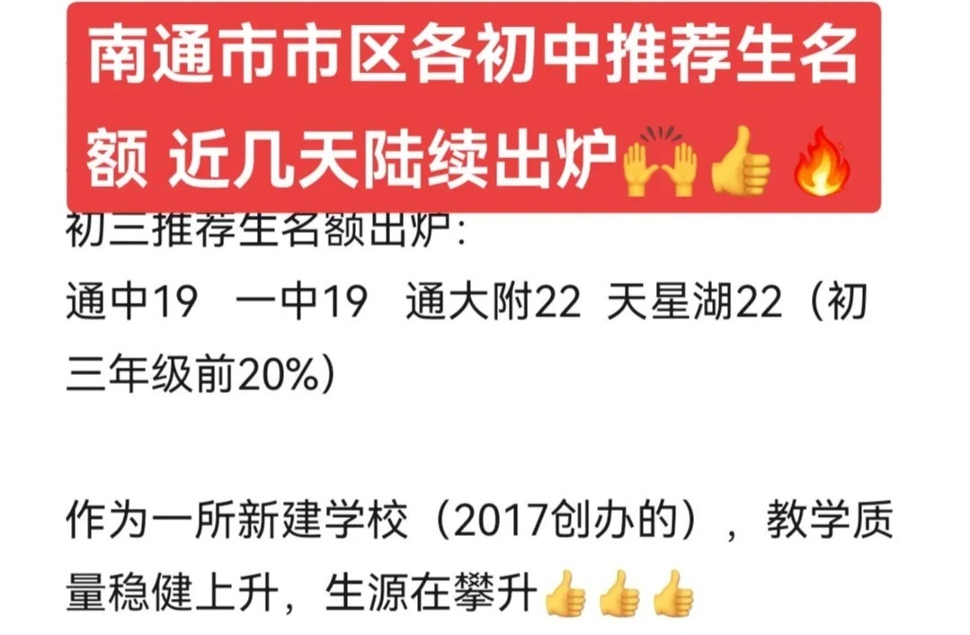 [焦点爆料] 网曝市区各初中陆陆续续开始分配推荐生名额,初三年级前20%。 |