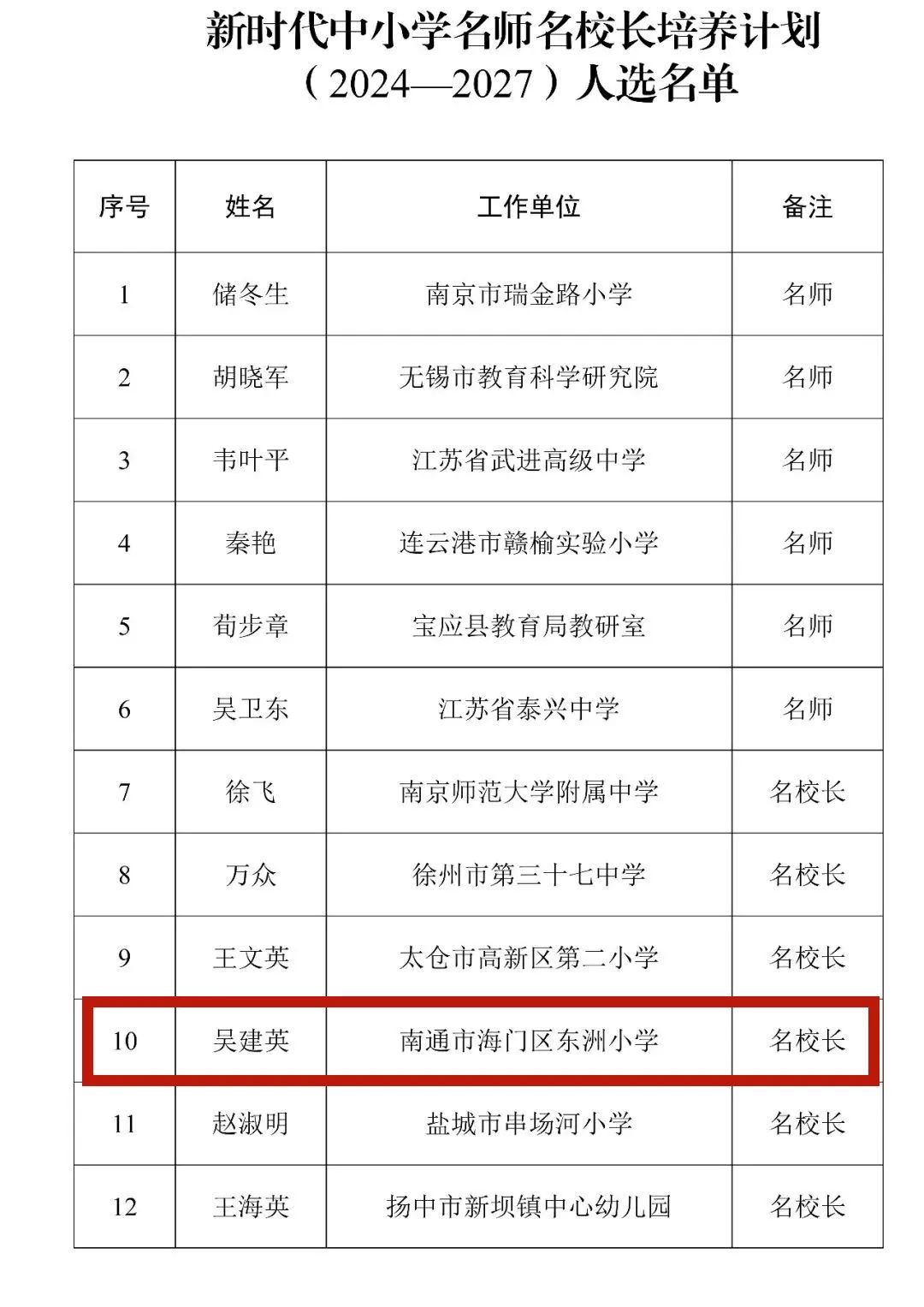 [新闻快讯] 最新公示!南通1位名校长上榜 |