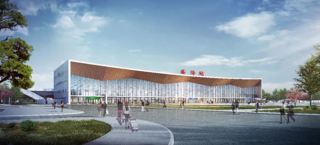 盛泽站站房建筑面积约1.2万平方米,设计最高聚集人数1000人。站房以“阔泽吴绫”为设计理念,从当地著名丝绸制品中,提取“飘逸”“优雅”意向,采用现代建筑语言,构建舒展大气的建筑形象。
