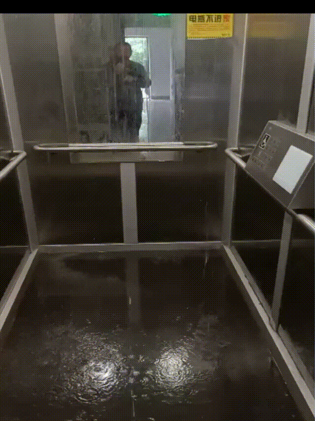 市民 陈先生:家里的电全部跳了,水从电表箱往下流。天台上有积水,电梯墙缝漏水导致电梯里进水停止运作,而且我家墙缝里也漏水。