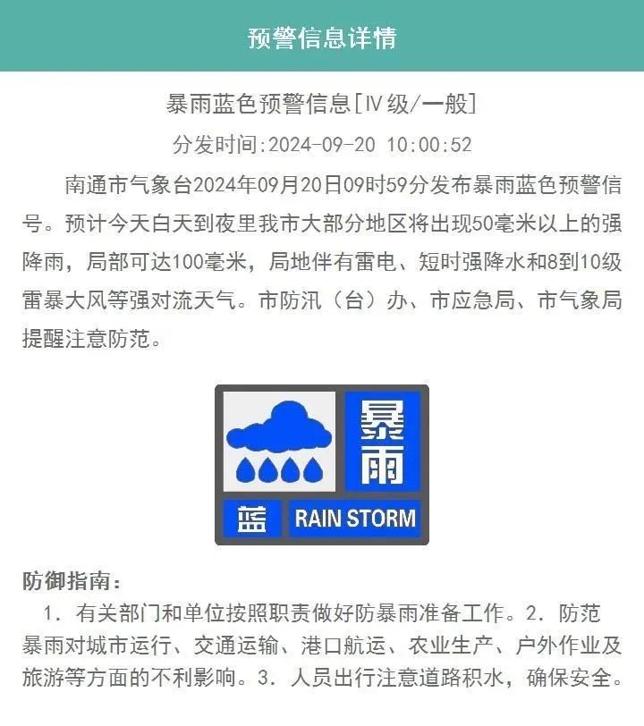 [新闻快讯] 暴雨蓝色预警!注意防范! |