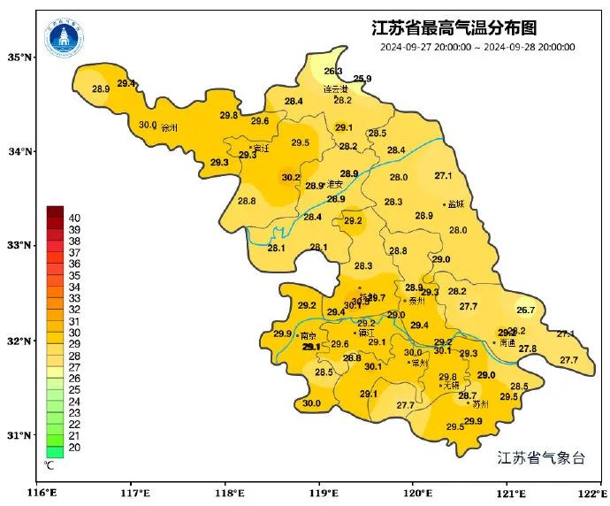 30日夜里起有一股较强冷空气自北向南影响我省,全省有一次降水过程,并伴有明显的降温和大风天气。受其影响,全省48小时过程降温6-8℃,预计10月3日早晨全省最低温度:淮北地区10~12℃,苏南地区16℃左右,其他地区13~15℃。