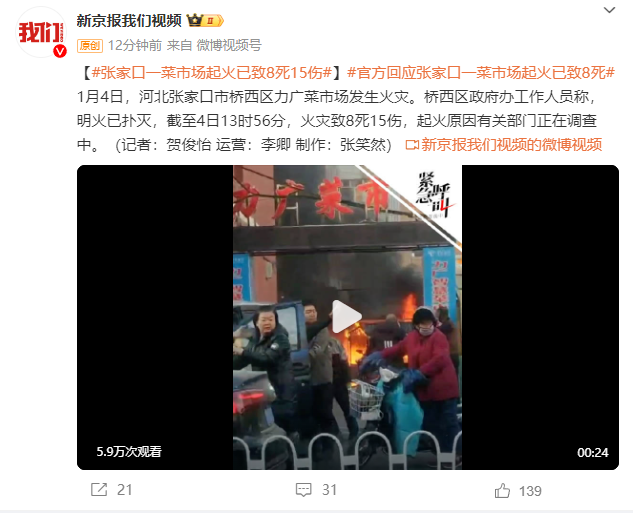 [新闻快讯] 突发!一菜市场起火致8死15伤,当地回应 |