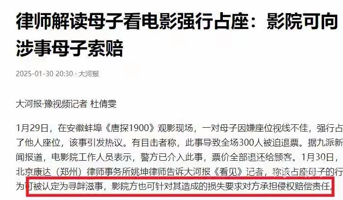 [新闻快讯] 母子电影院霸座处理结果:一没拘留,二没罚款,三没道歉 网友怒了 |