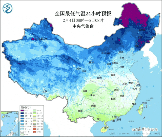 中央气象台2月5日10时发布蛇年首个寒潮蓝色预警: