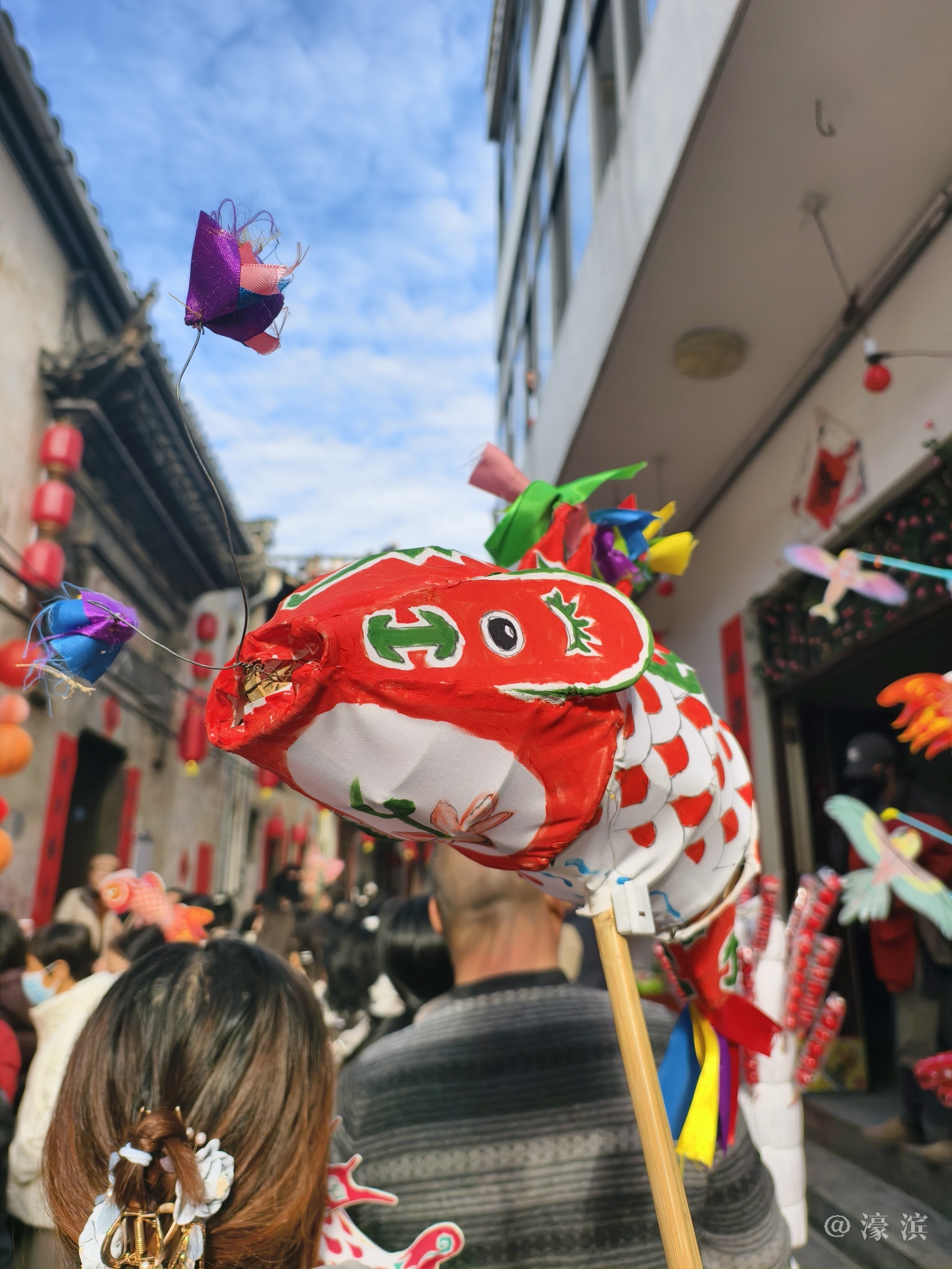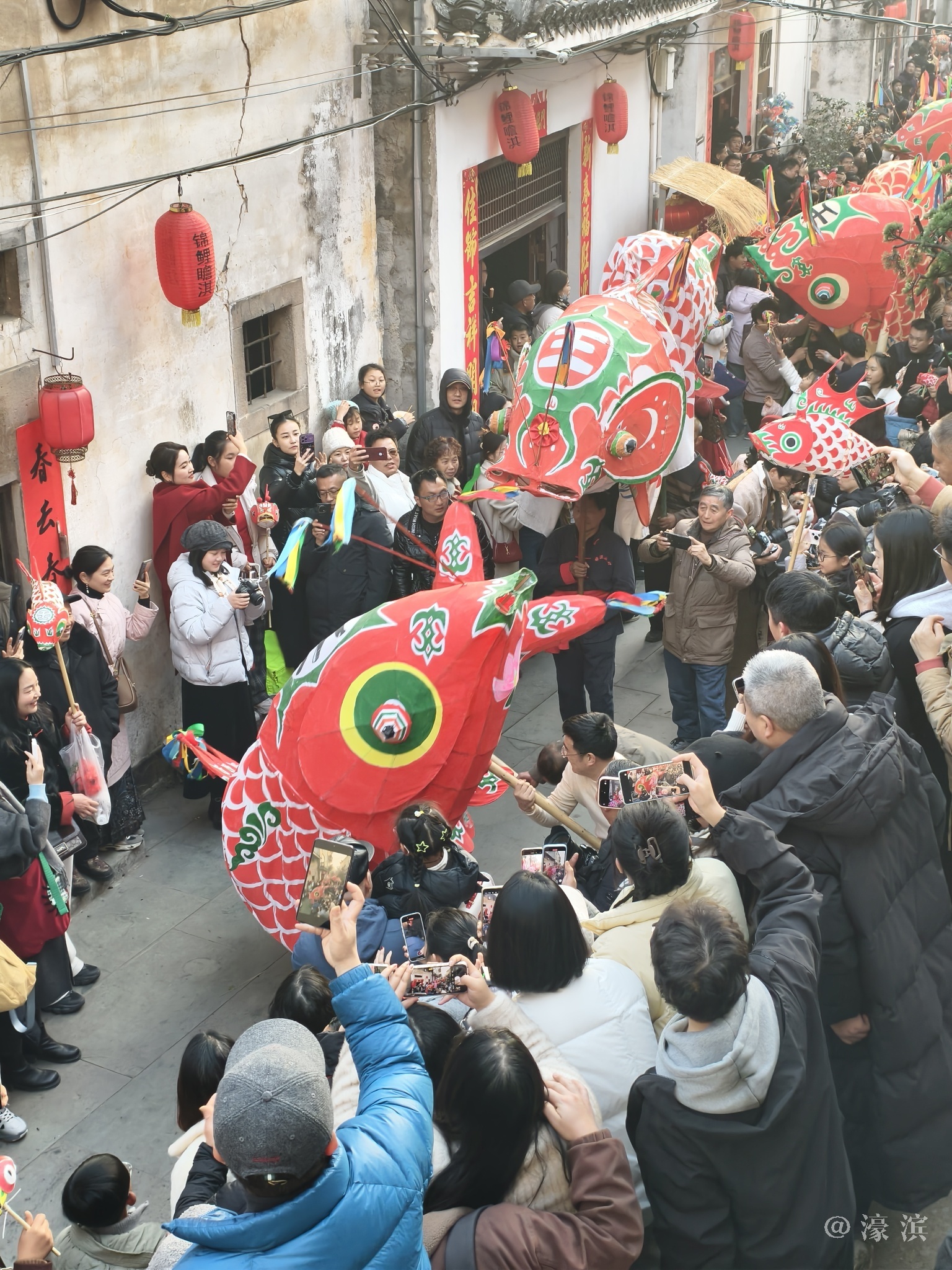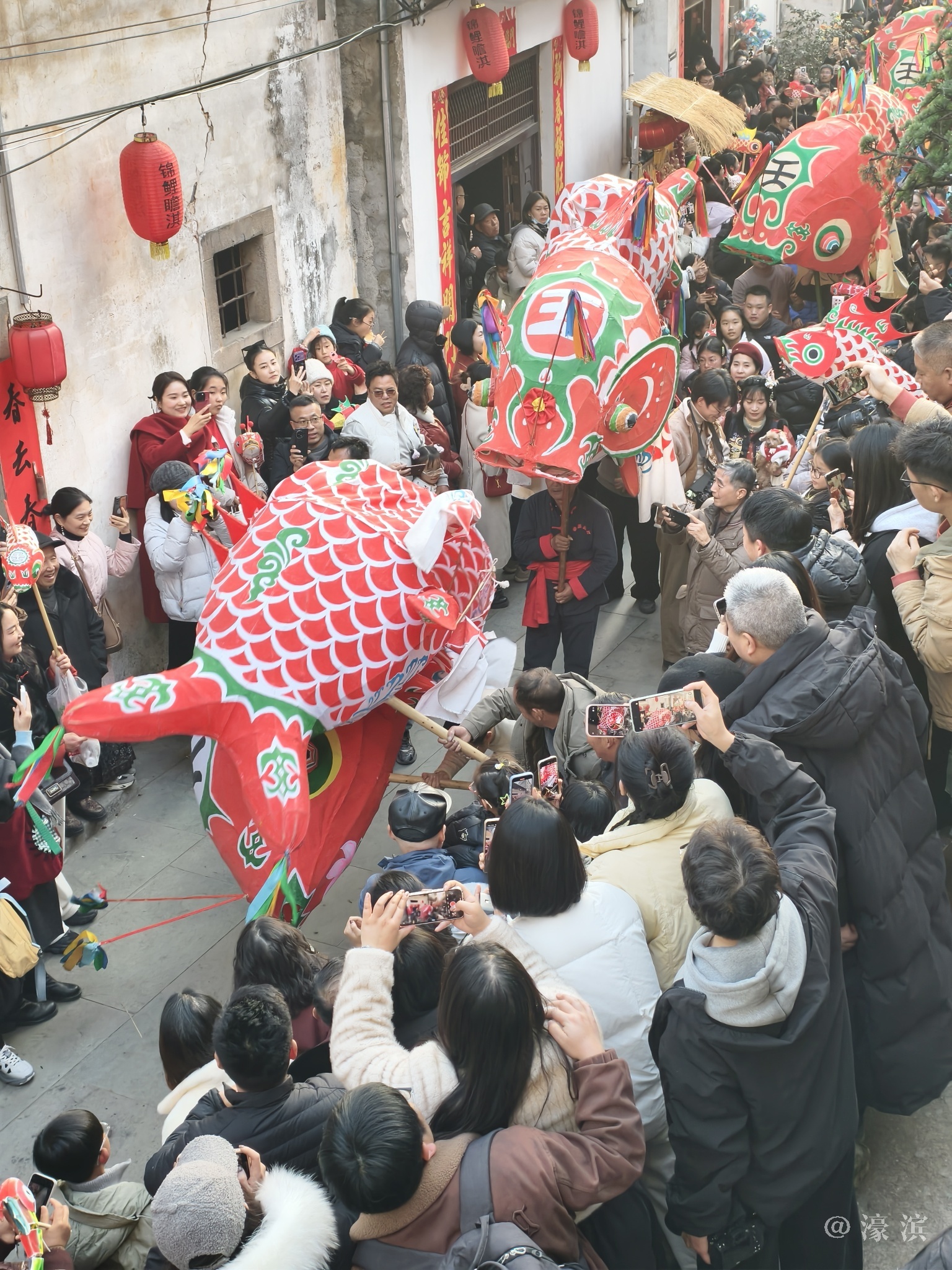 蛇年春节,歙县瞻淇古村被鱼灯唤醒。竹篾作骨,撑起灵动形态;彩纸为衣,晕染吉祥瑞彩;烛光摇曳,点亮新春祈愿。鱼灯队伍浩浩荡荡,与翘角飞檐的徽派建筑相映成趣,勾勒出独属于徽州的新年盛景 。* c8 |& u* s5 k1 r- F