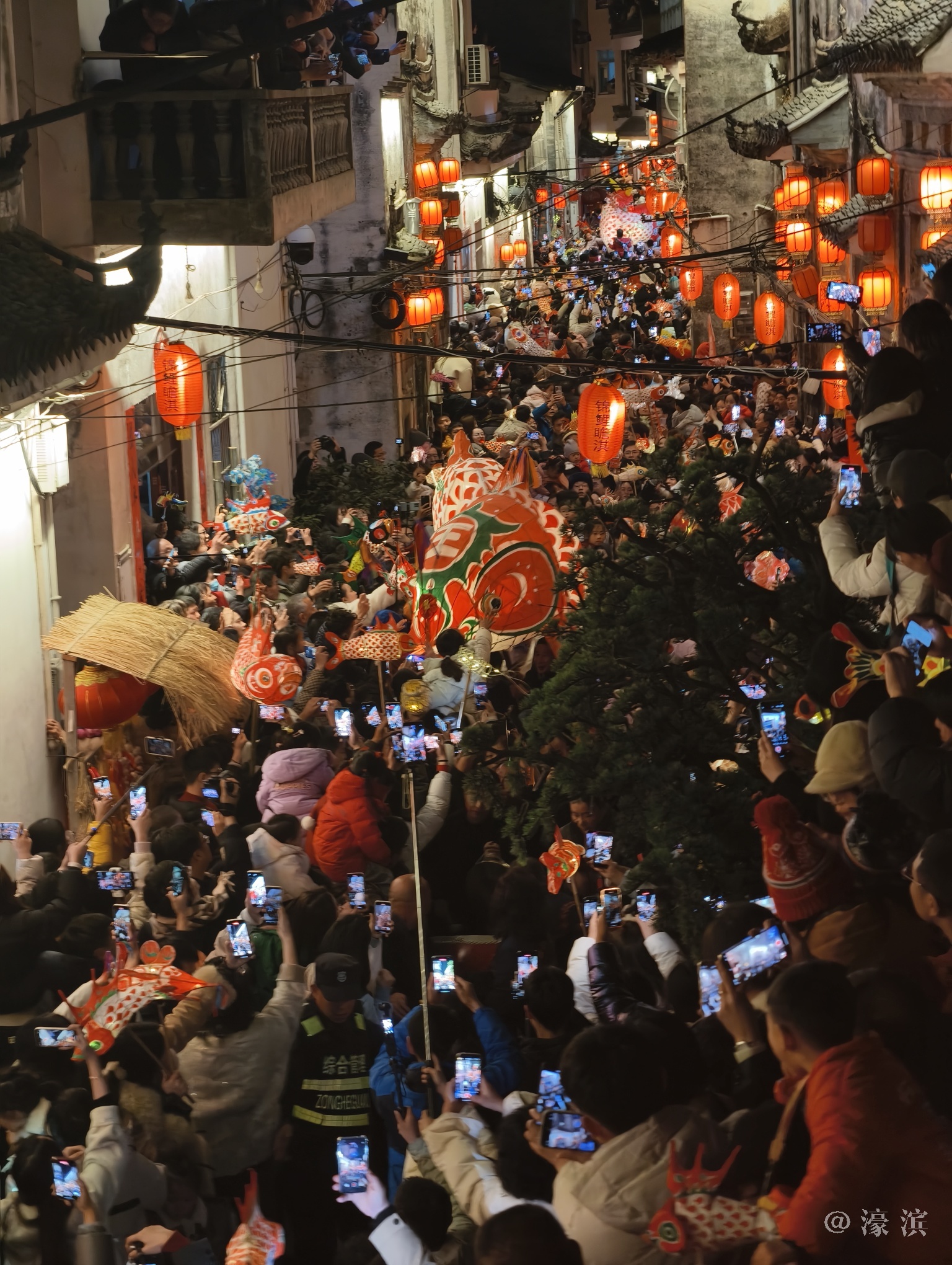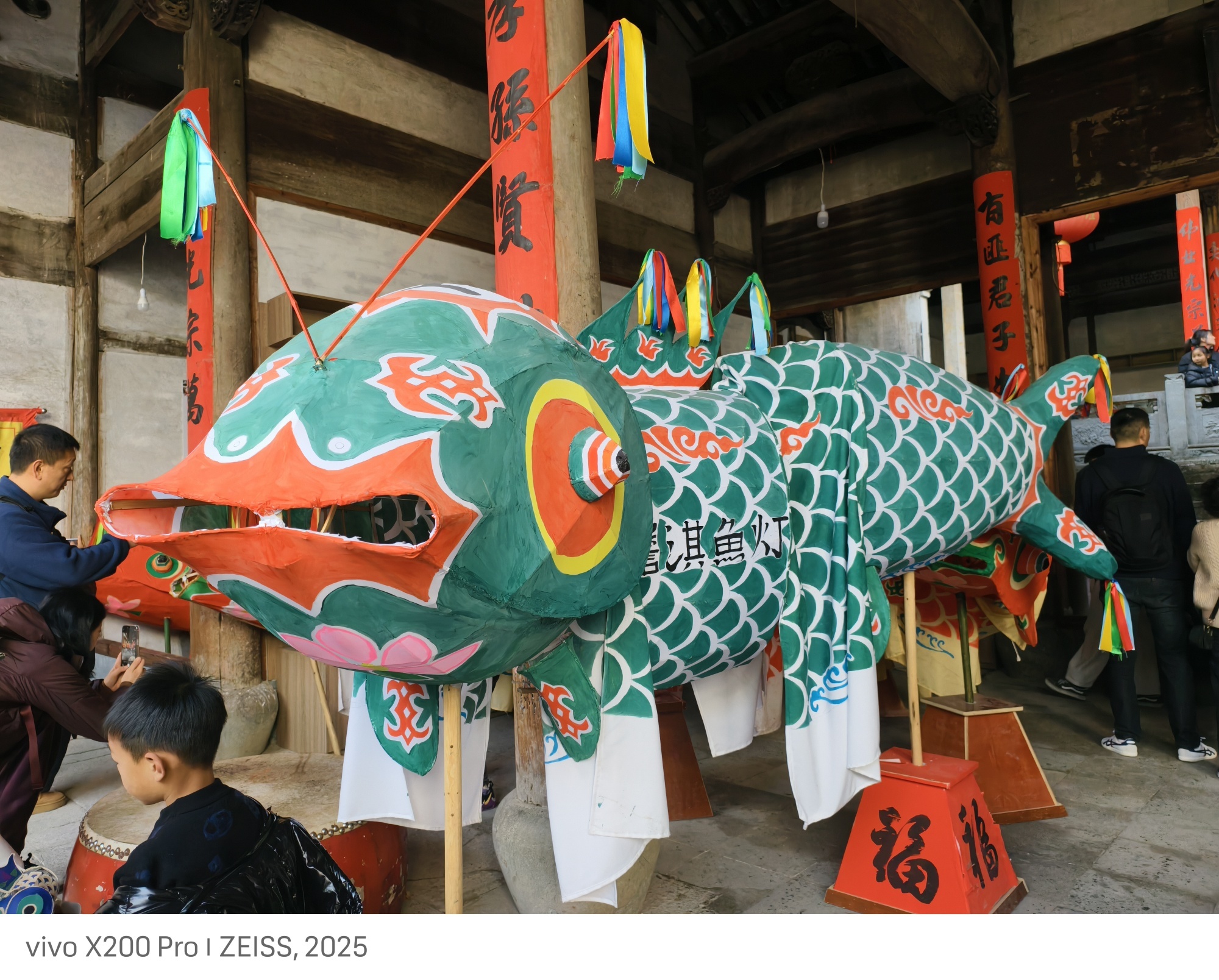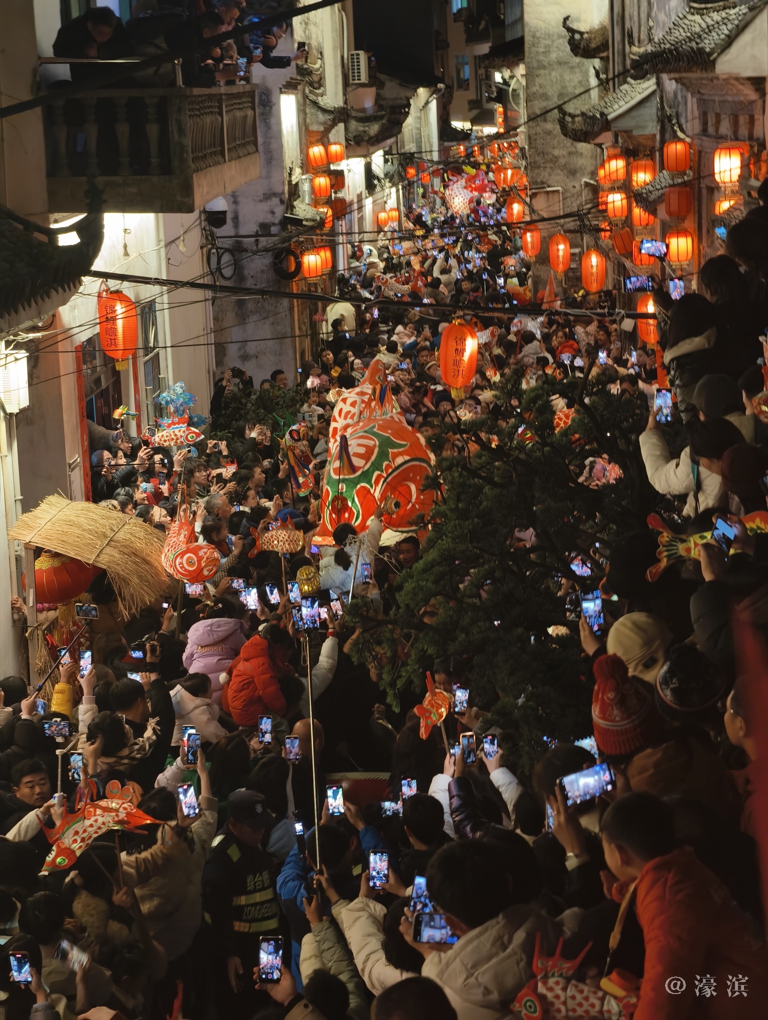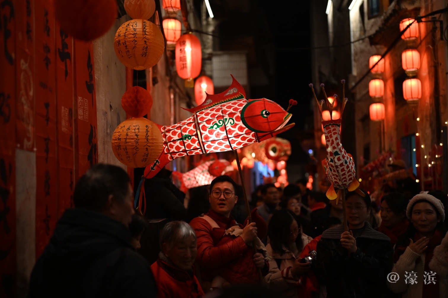 蛇年春节,歙县瞻淇古村被鱼灯唤醒。竹篾作骨,撑起灵动形态;彩纸为衣,晕染吉祥瑞彩;烛光摇曳,点亮新春祈愿。鱼灯队伍浩浩荡荡,与翘角飞檐的徽派建筑相映成趣,勾勒出独属于徽州的新年盛景 。* c8 |& u* s5 k1 r- F